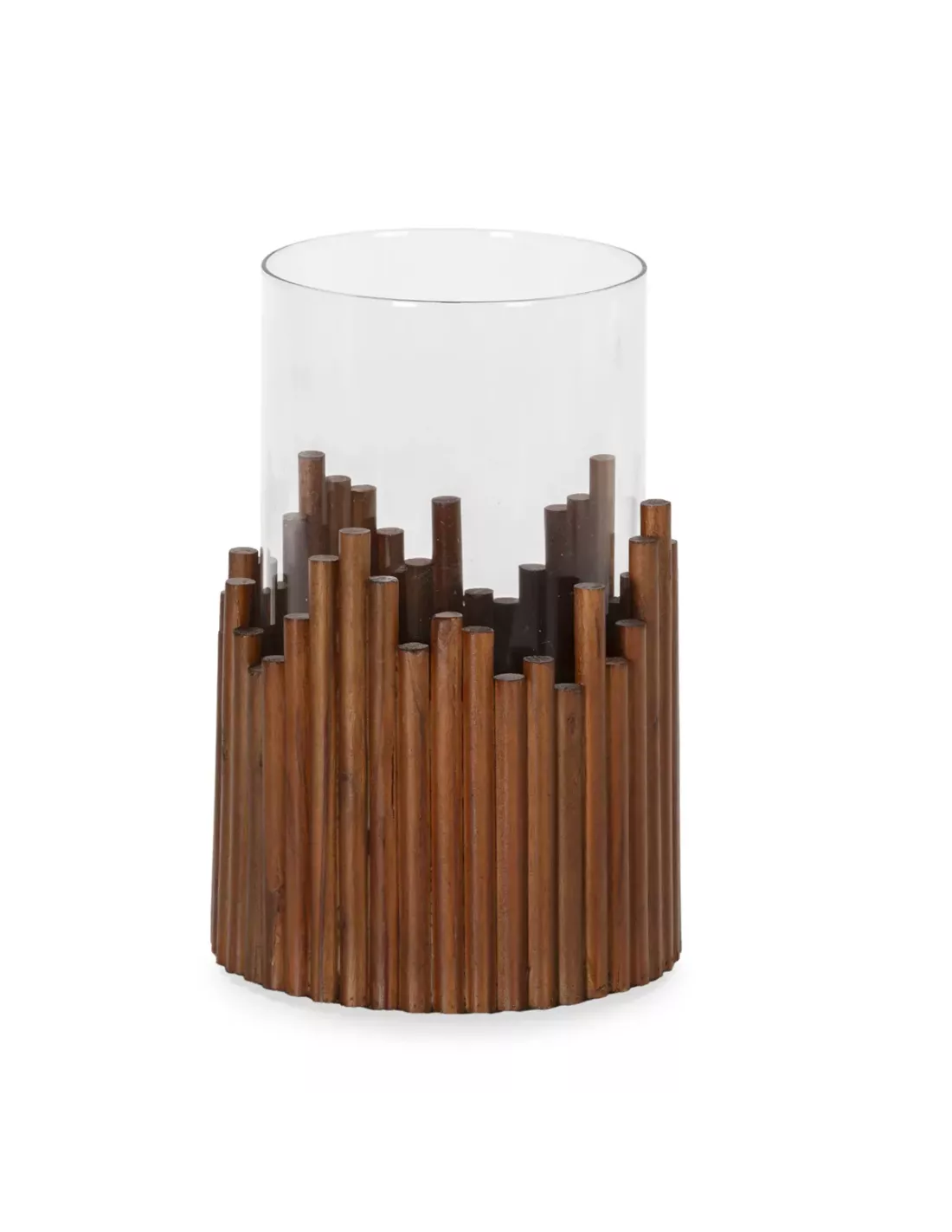 Bougeoir rond naturel en bois et verre, Thai Natura