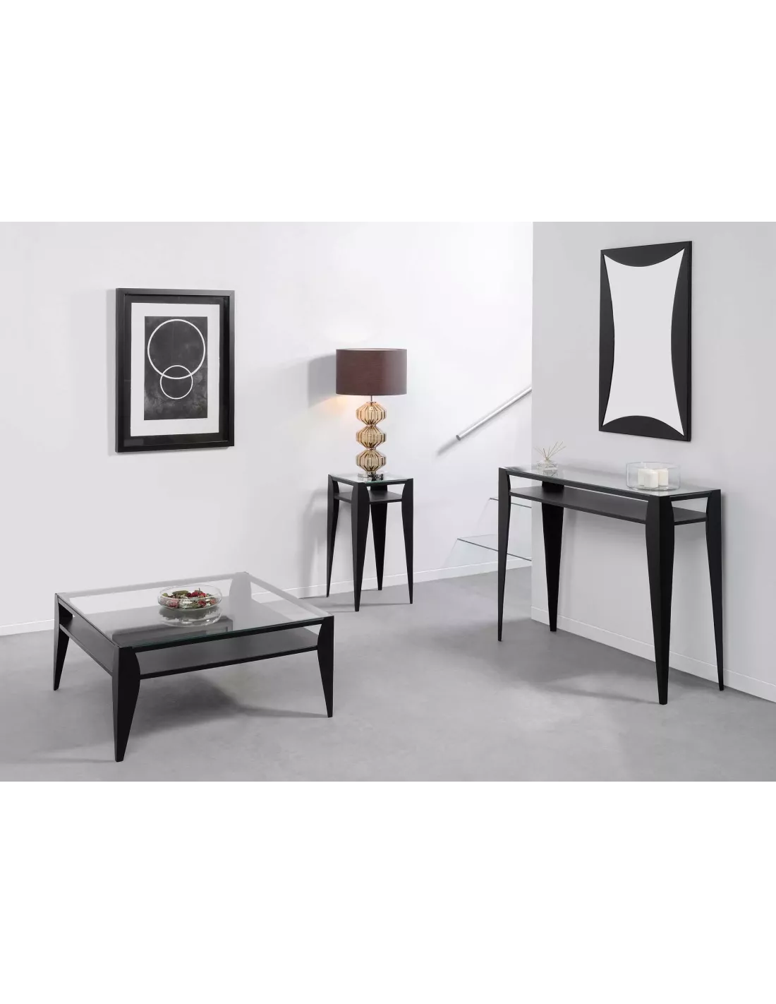 Bout de canapé design carré metal et verre, Un Autre Regard