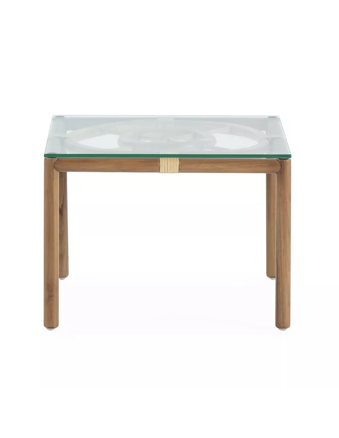 Bout de canapé carré outdoor en teck rotin et verre, Thai Natura