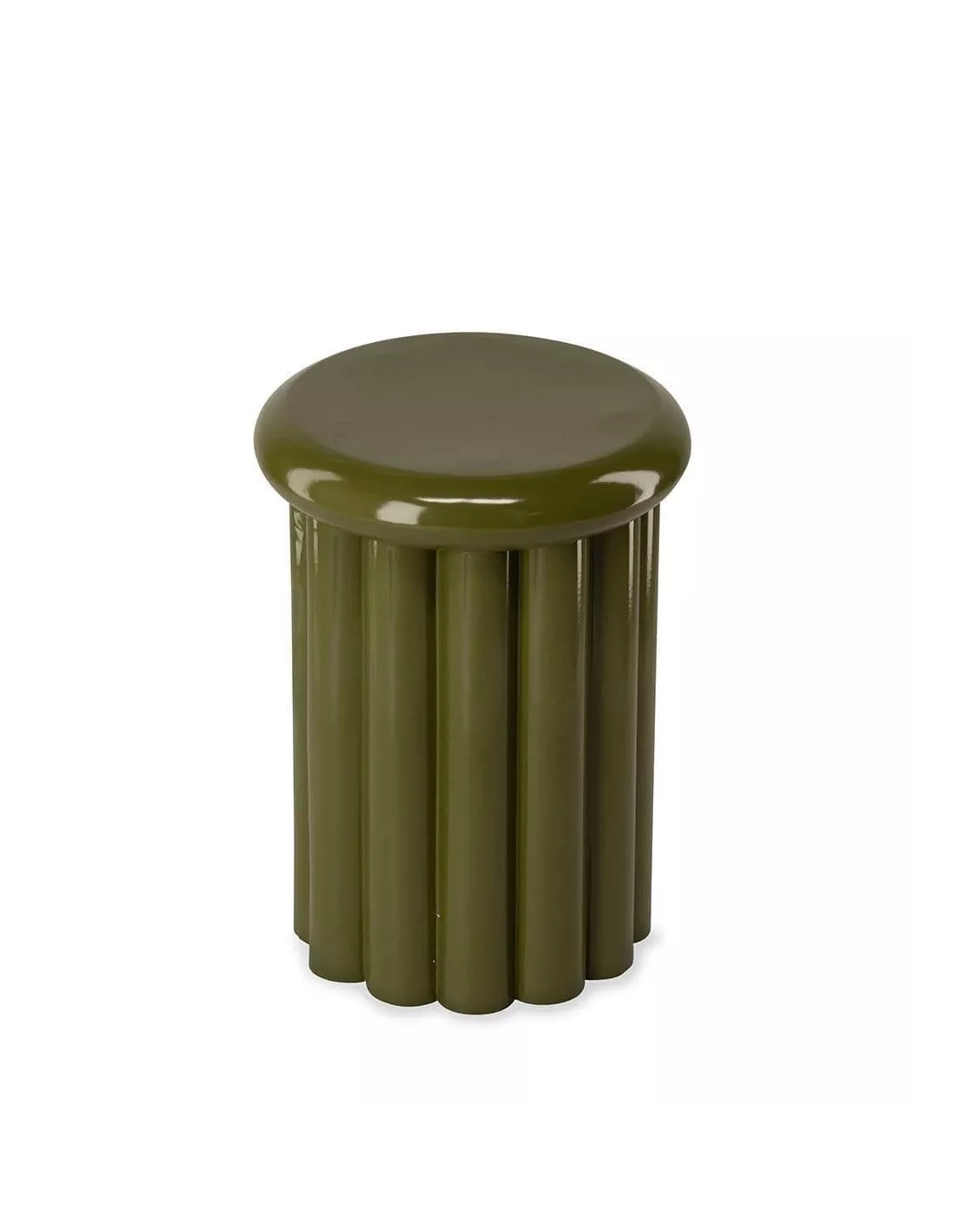Bout de canapé en metal vert olive brillant