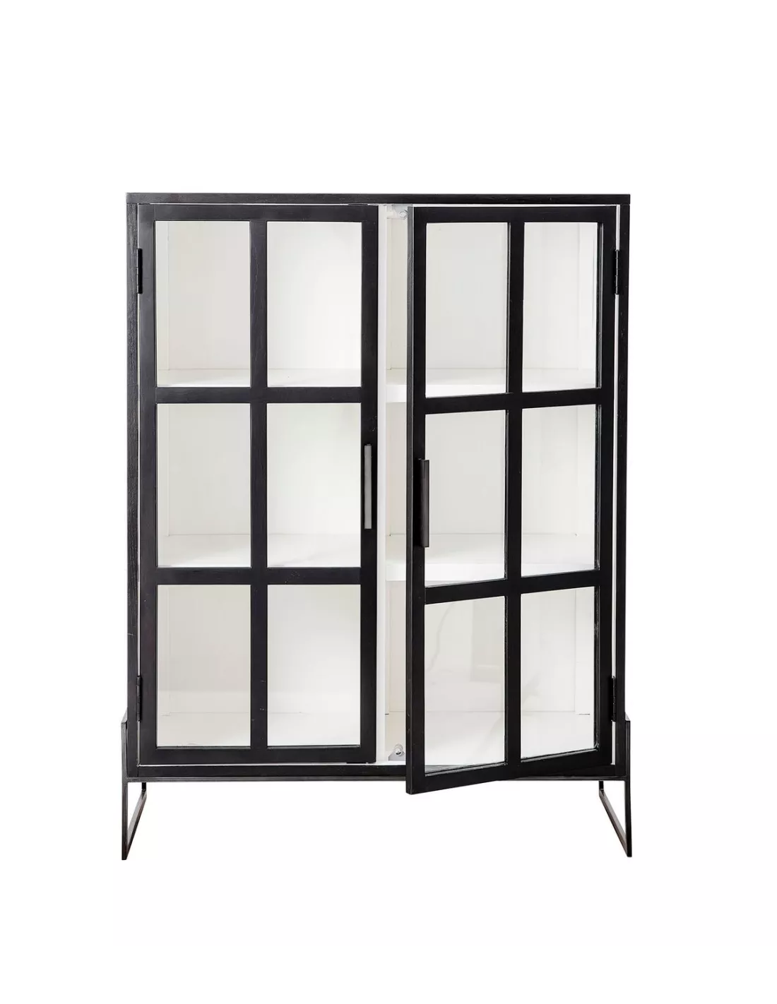 Ce très beau buffet vitré est conçu en chêne noir avec 2 portes en verre et en chêne. Vous pourrez mettre en valeurs vos objets préférés, l’utiliser en bibliothèque avec de beaux livres, ou encore en vaisselier grâce à ses trois étagères. Il prendra sa place aisément dans un intérieur scandinave, design ou contemporain.