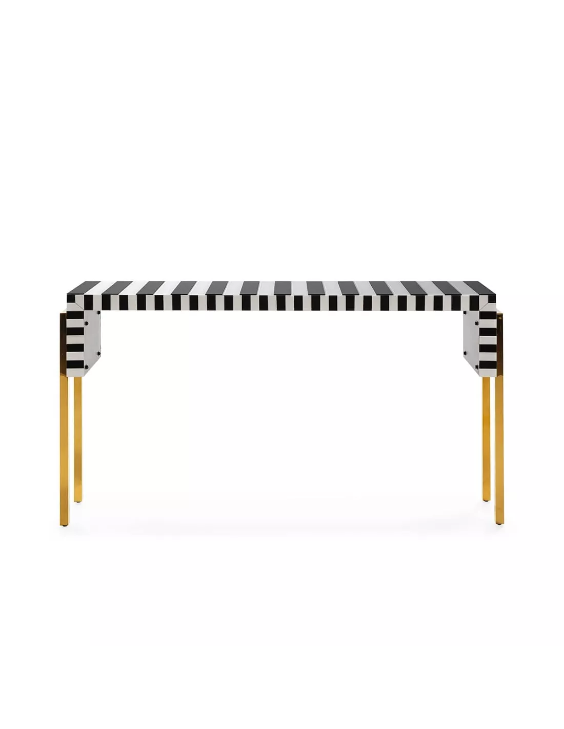 Découvrez notre élégante console Zebra de la collection Thai Natura, conçue par le talentueux designer HUp Interiorismo. Avec ses rayures noires et blanches distinctives et son piétement doré raffiné, cette console apporte à la fois modernité et sophistication à votre espace. Mesurant 156 x 38 x 85 cm, elle offre un design épuré et intemporel. Fabriquée en métal de haute qualité, cette console est non seulement esthétique, mais aussi durable. Complétez harmonieusement votre salon avec le meuble TV coordonné pour une ambiance cohérente et stylée.