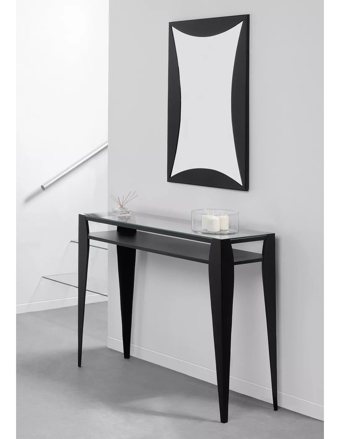Console design en metal gris et verre, Un Autre Regard