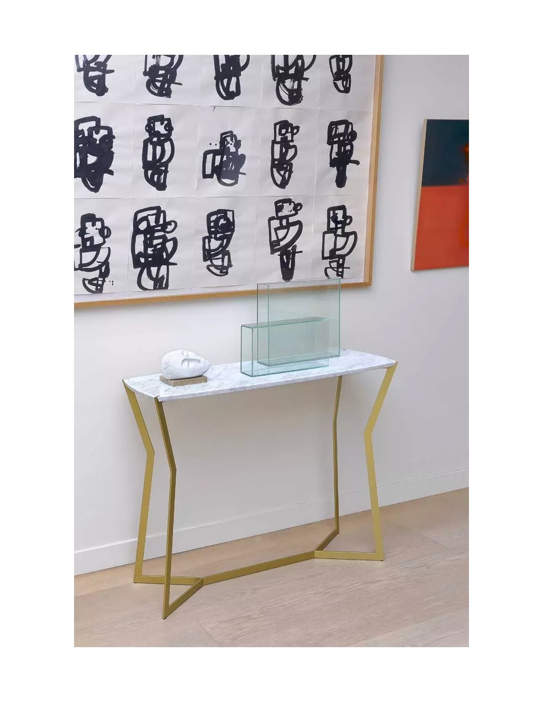 Console design rectangulaire en marbre de Carrare et piètement or, Coédition