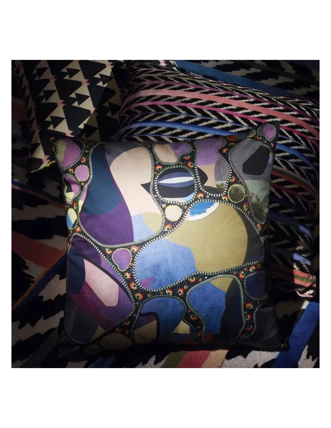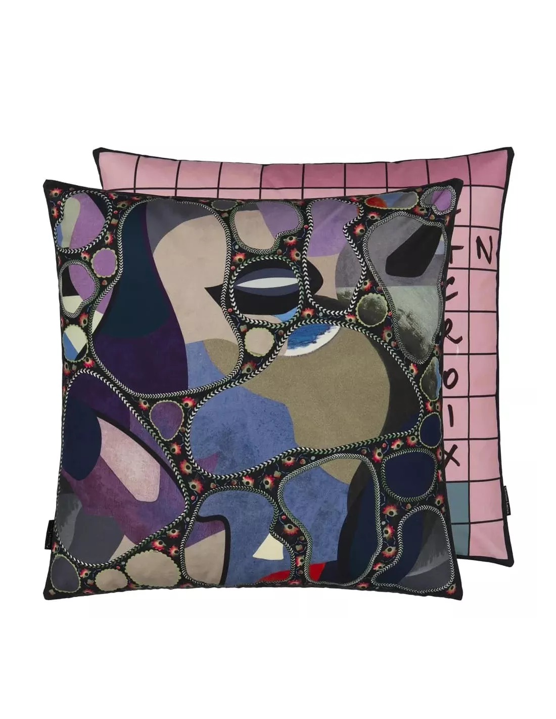 Des formes merveilleusement fluides sont remplies de motifs marbrés dans ce coussin Gems Mix Agate, contemporain et graphique à la fois, de Christian Lacroix Maison. L’impression numérique se transforme en un motif carrelé avec le lettrage de Christian Lacroix. Imprimé sur un élégant satin de coton.