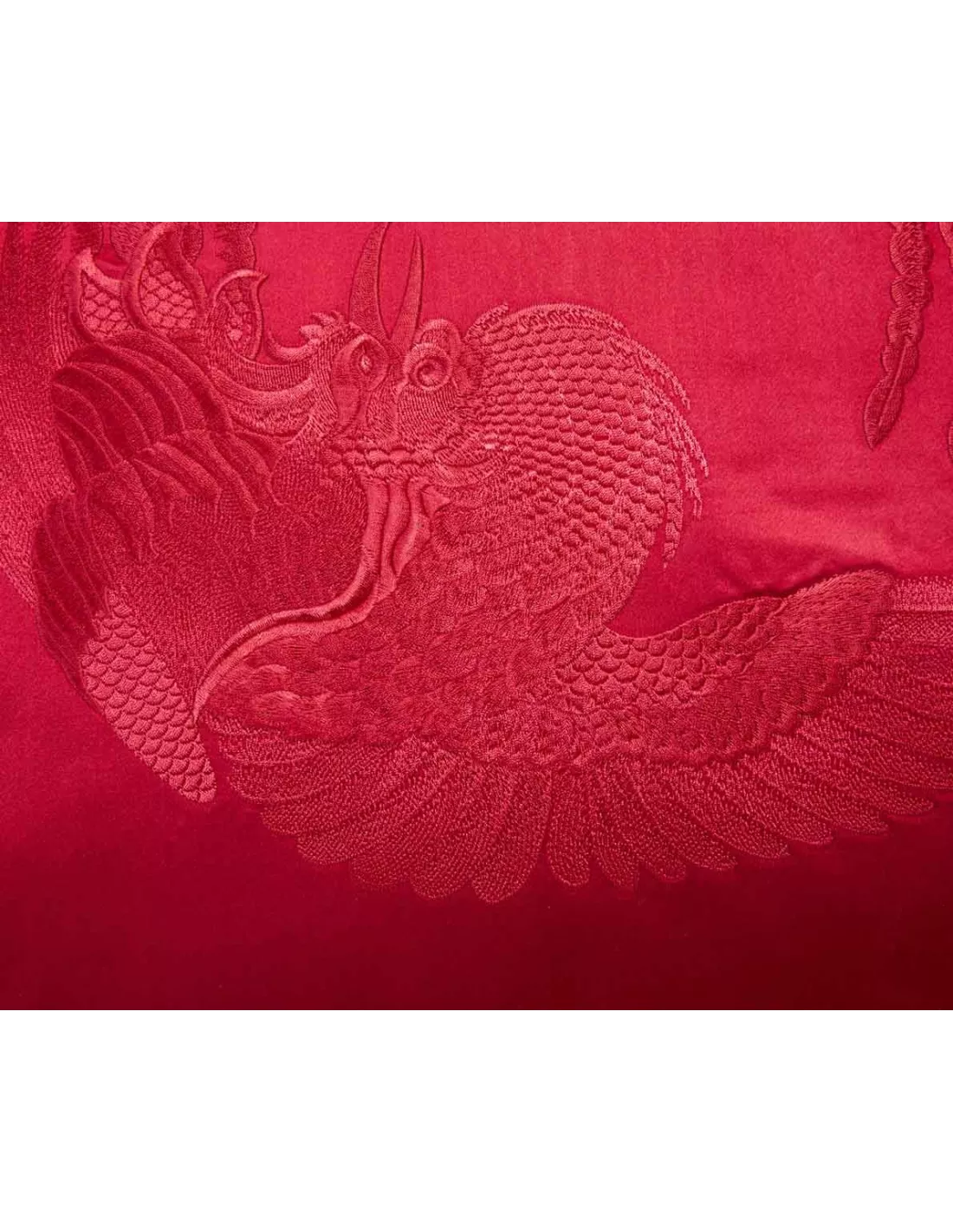 Le coussin en satin Phoenix rouge arbore un très beau motif d’oiseaux brodés ton sur ton. Ce design au luxueux tracé apportera une touche raffinée à votre décoration. Ce coussin proposé par Kenzo combine un style à la fois luxueux et sophistiqué. Le verso du coussin est uni rouge.