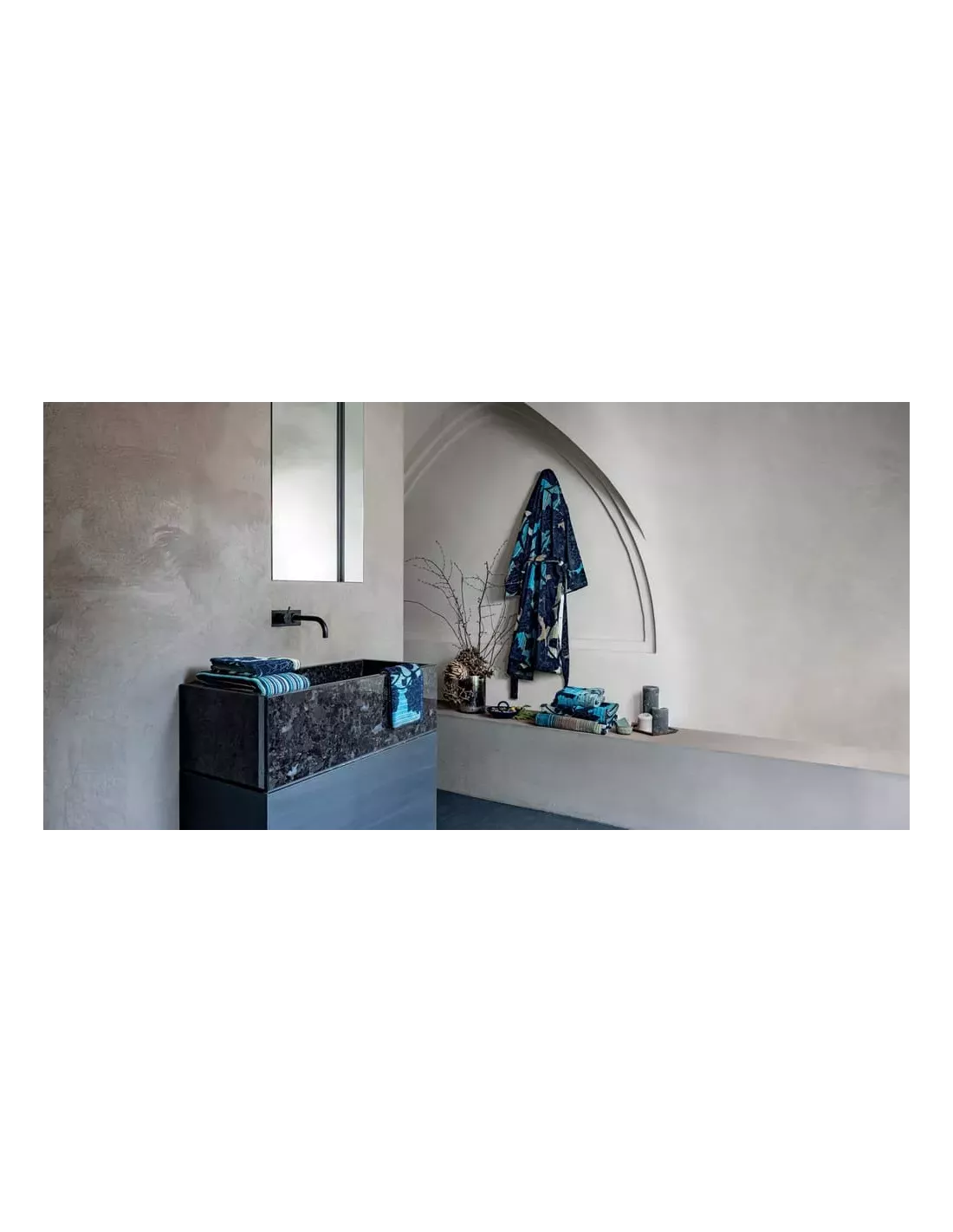 Pour parfaire l’expérience, un peignoir coordonné est également disponible, ainsi qu’une serviette de douche, des serviettes invités et des sets.