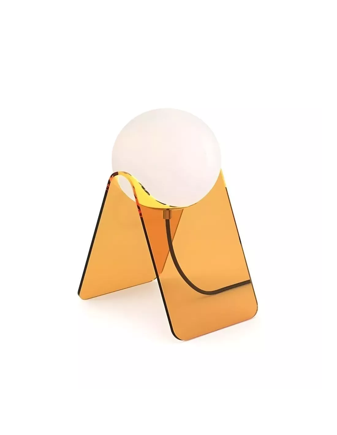 Le globe d’éclairage, quant à lui, est rond et blanc, diffusant une lumière douce et confortable. Cette forme sphérique évoque la pureté des lignes géométriques, conférant à la lampe un style seventies et contemporain.