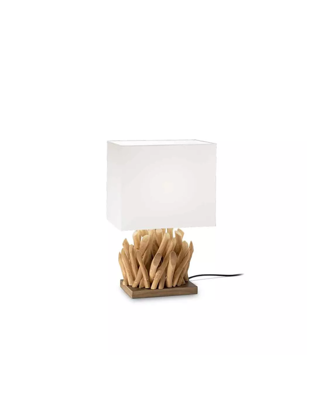 Lampe de table en bois flotté et abat-jour blanc en tissu, Ideal Lux