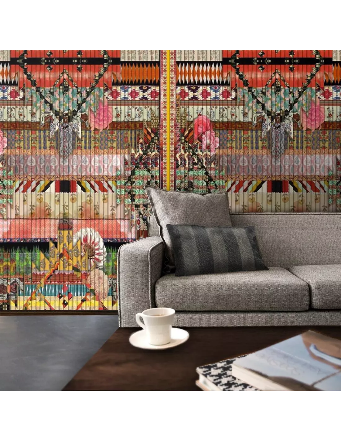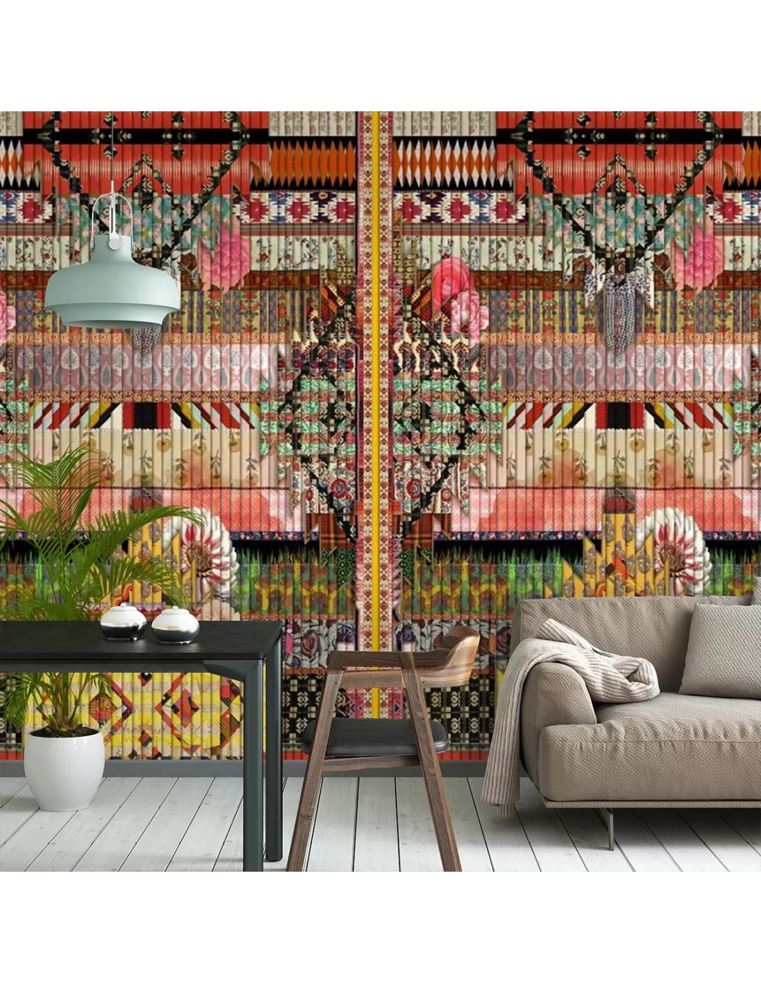 Panneau décoratif de papier peint aux motifs éclectiques vintage et azteque, Christian Lacroix