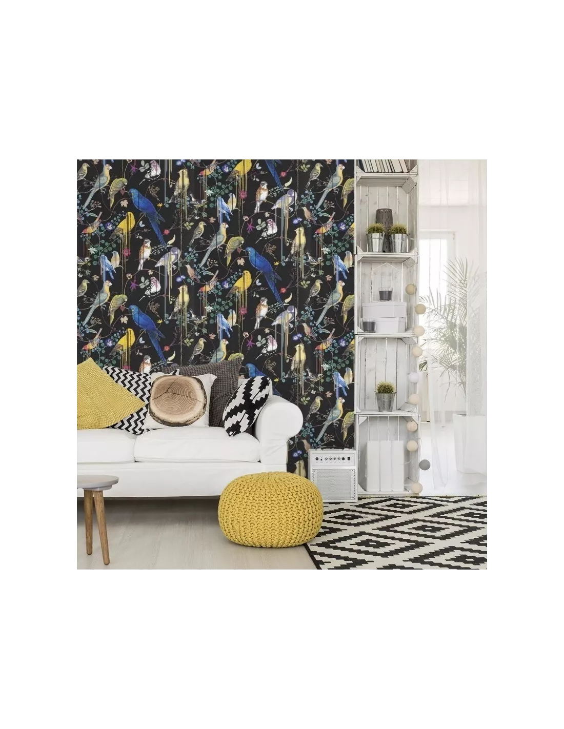 Papier peint aux somptueux oiseaux multicolore sur fonds noir, Christian Lacroix
