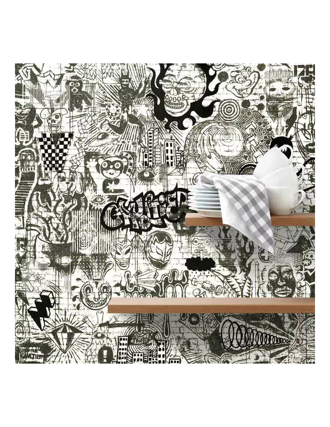 Papier peint street art noir et blanc, Jean Paul Gaultier