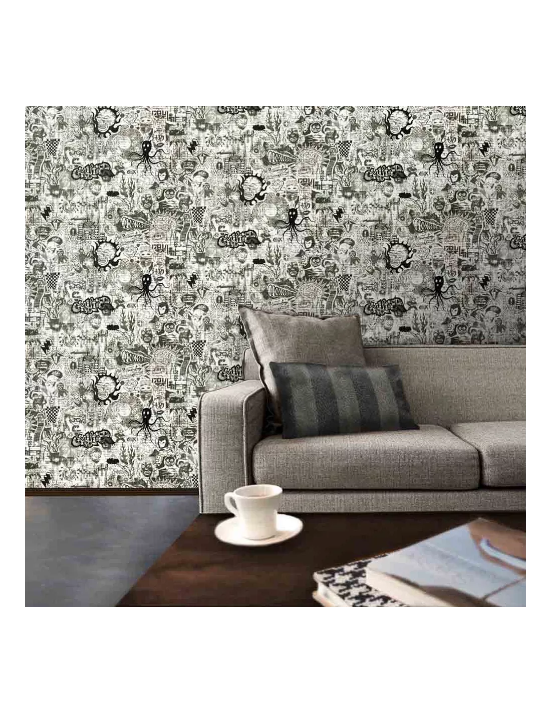 Le papier peint Ernest Jean Paul Gaultier met en scène un condensé de la force brute du street art. Certains détails sont mis en valeur par un flockage noir. Cette création rappelle l’attachement de Jean Paul Gaultier à la culture de la rue. Ce papier peint possède un support intissé, ce qui rend sa pose plus facile. La colle doit être appliquée sur le mur. Ce papier peint Jean Paul Gaultier est édité par la maison Lelièvre.