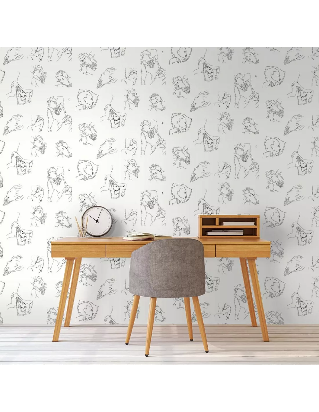 « Les rêves sont la littérature du sommeil », dixit le poète, cinéaste et graphiste de renom Jean Cocteau. Inspiré d’un de ses œuvres, le papier peint Les Dormeurs arborent des dessins de personnages qui dorment, dont l’écrivain français Raymond Radiguet. Avec une finition mate, cette toile de Jouy en monochrome, représentant des scènes du quotidien, est imprimée en rotogravure. Ce papier peint possède un support intissé, ce qui rend sa pose plus facile. La colle doit être appliquée sur le mur.