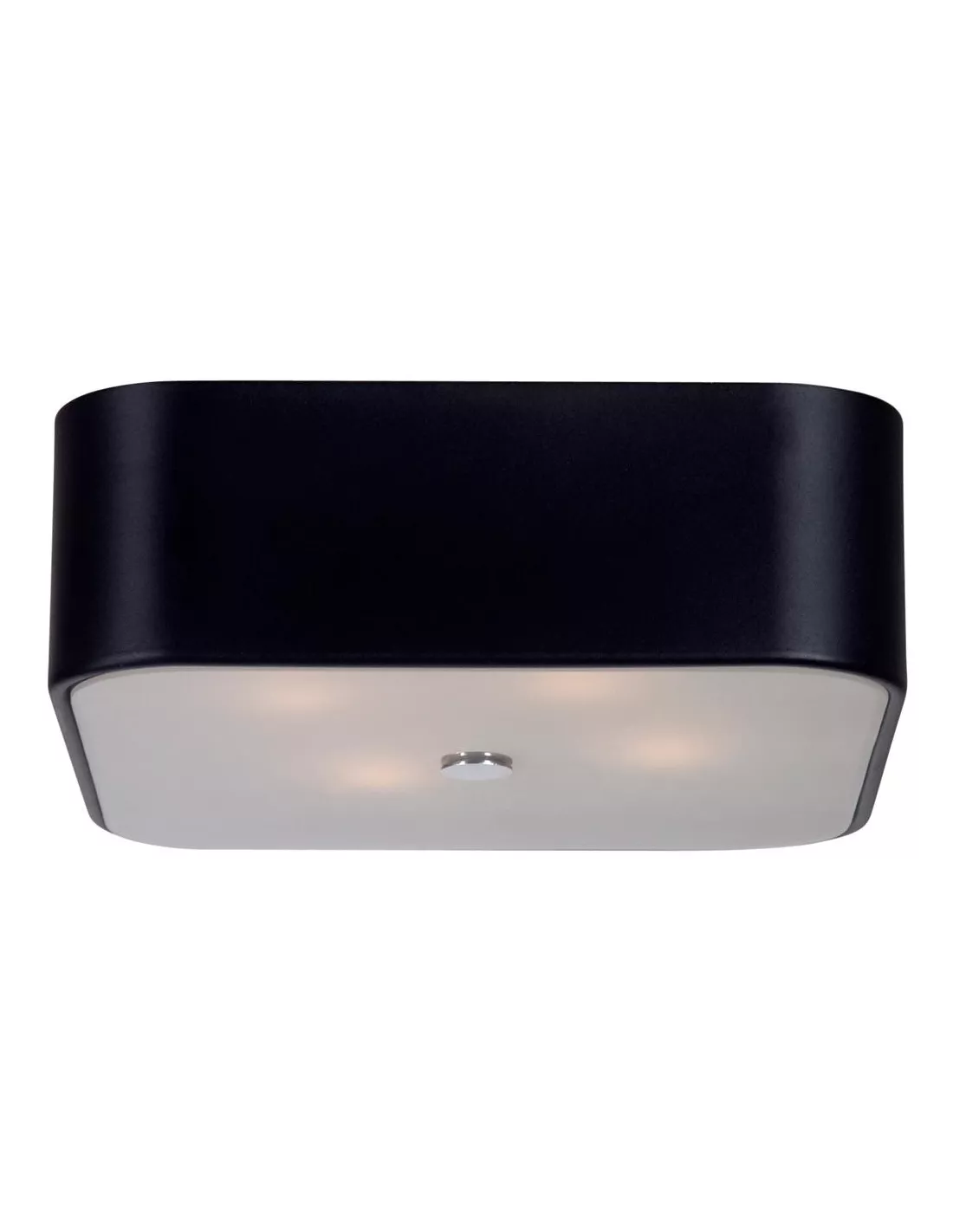 Le plafonnier Quadro est en acier chromé et acier peint satiné noir.
