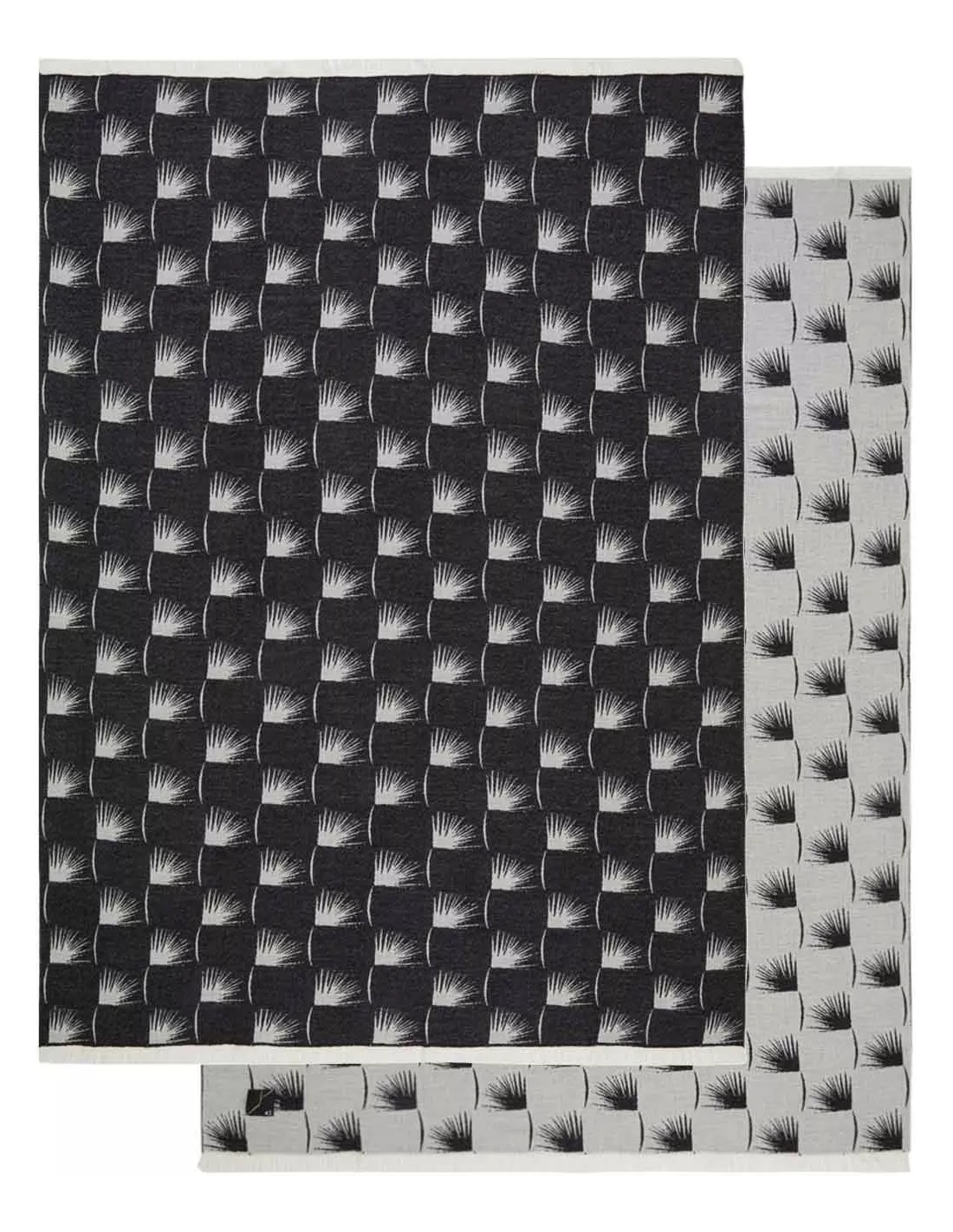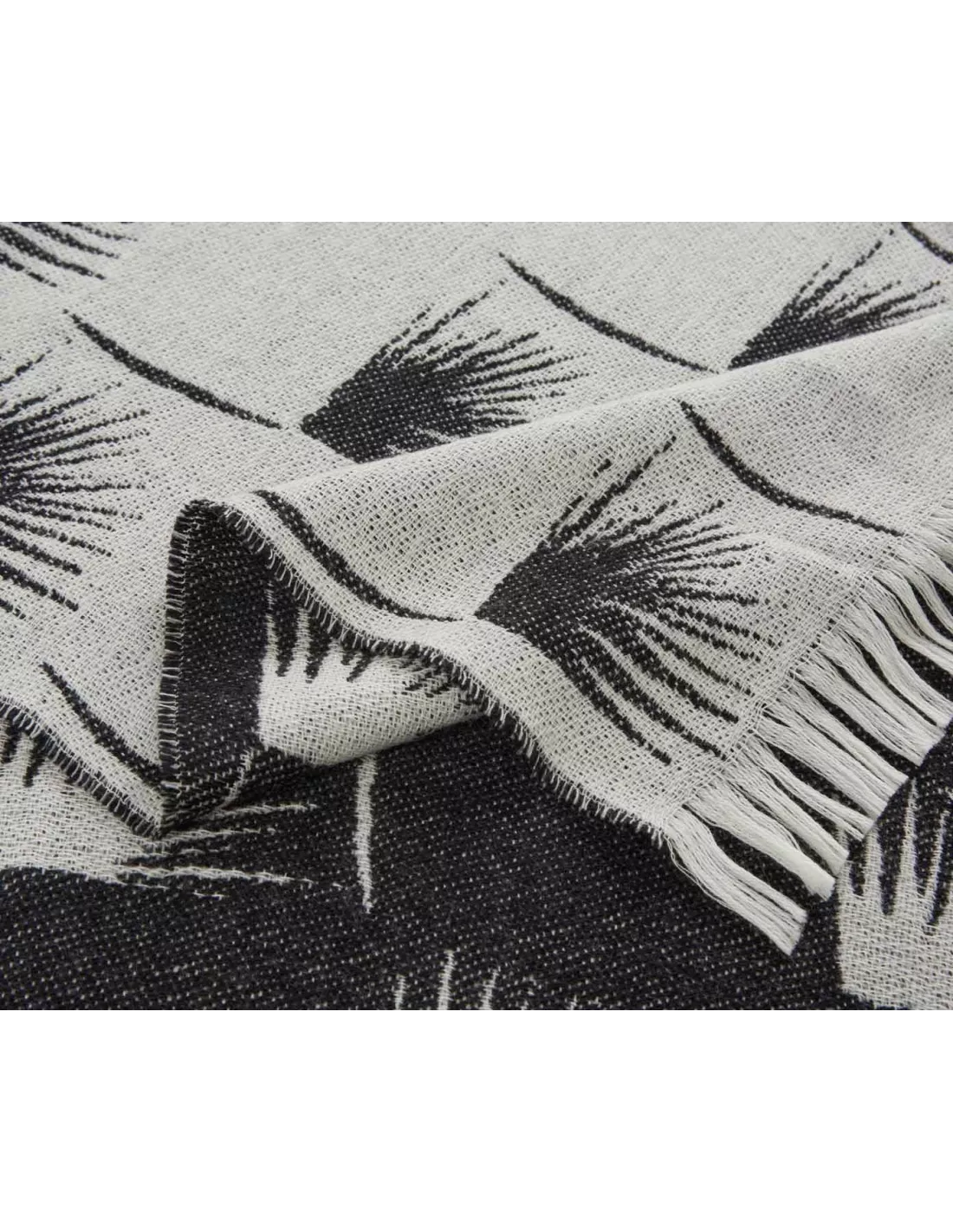 Plaid frangé en laine noir et blanc réversible motif petite feuilles, K3 design by Kenzo Takada