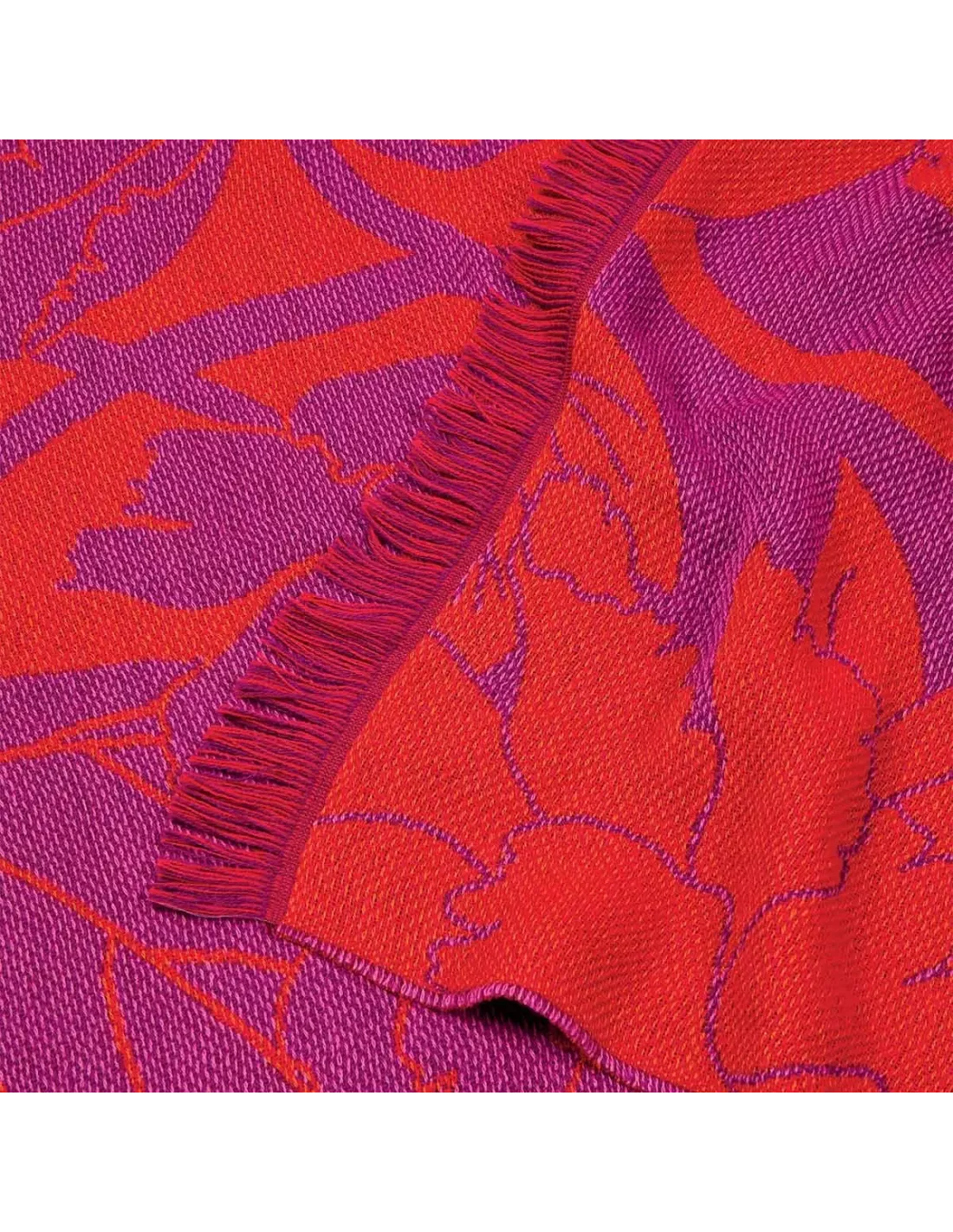 Le plaid Tan Sai orange de K3 Design dévoile un motif de pivoines monochromes, s’épanouissant avec grâce sur un fond uni. Chaque fleur semble s’ouvrir avec une délicatesse apaisante, dans un jeu subtil de nuances ton sur ton qui captive le regard.