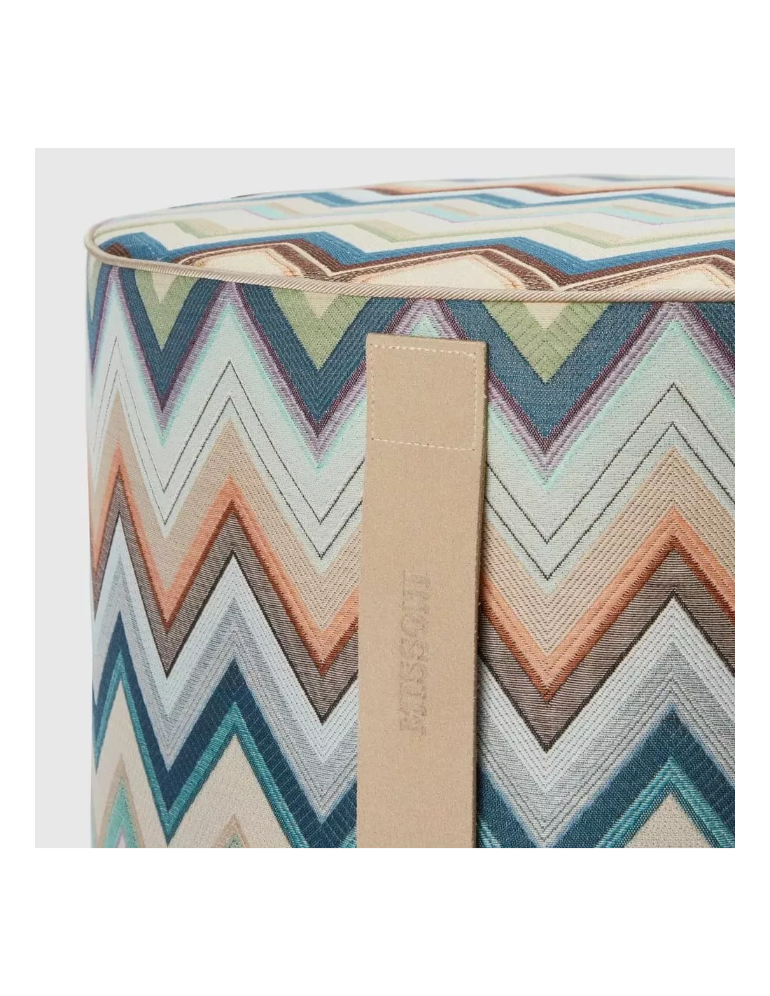 Pouf design cylindre au motif à chevrons aux tons bleus, Missoni Home