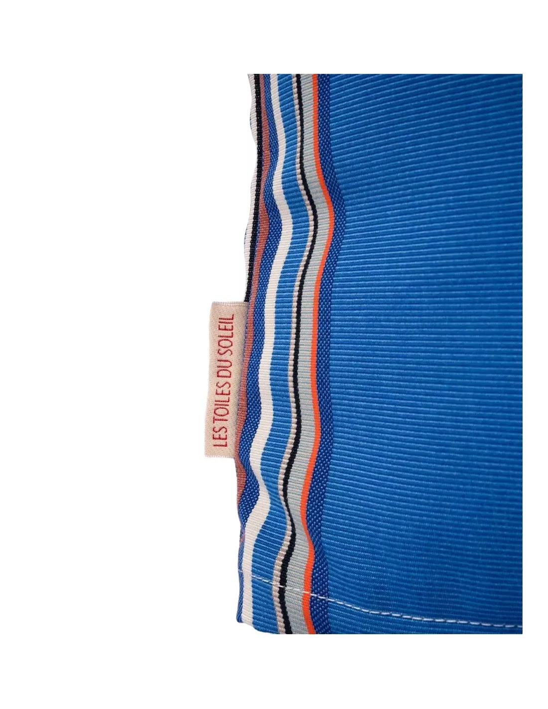Pouf ou repose pieds bleu en tissu outdoor, les Toiles du Soleil