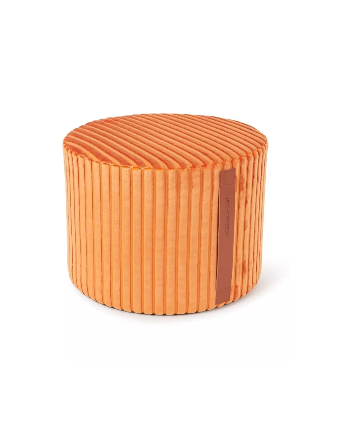 Pouf Coomba orange Missoni Home. Ce pouf Missoni Home est un pouf haut de gamme en velours à grosses rayures ton sur ton en relief. Déhoussable, le pouf cylindre Coomba possède une poignée en cuir siglée Missoni Home sur le côté et un fond en tissu Eucla.
