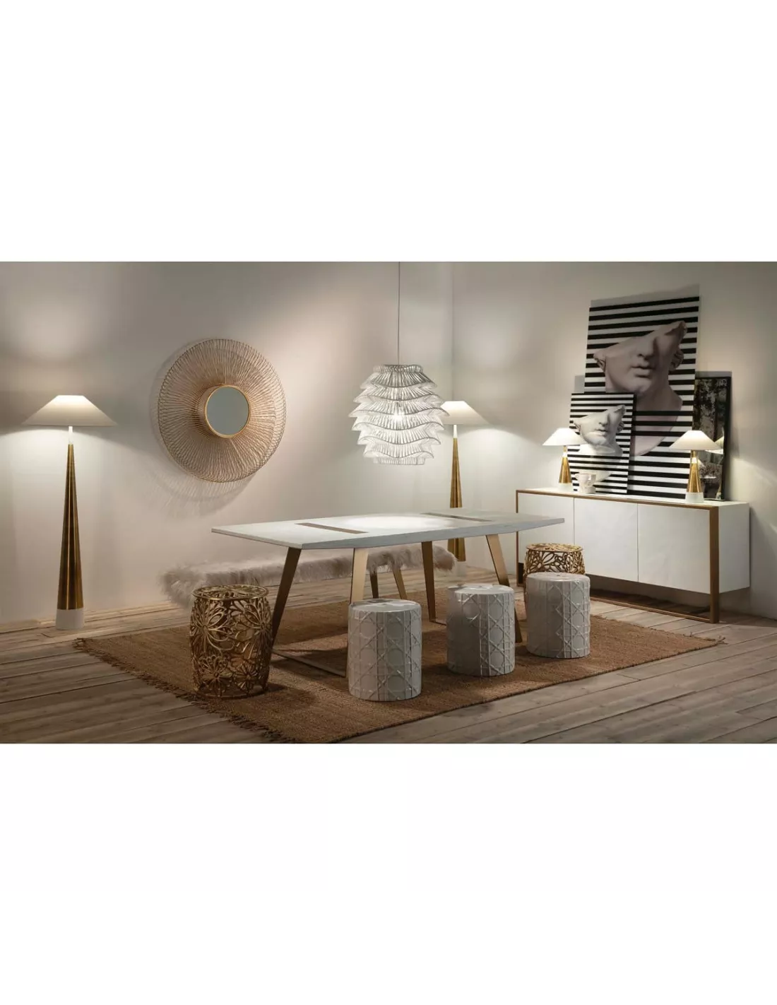 Cette suspension en rotin peint en blanc est une pièce élégante qui apportera une touche de raffinement à votre intérieur. Avec des dimensions de 60 x 60 x 71 cm, elle représente un équilibre parfait entre modernité et naturel. Son câble d’environ 200 cm permet une installation pratique, et elle requiert une ampoule E27, non incluse. Cette suspension offre un éclairage doux et chaleureux, tout en ajoutant une touche de grâce et de sophistication à votre espace. Avec son design épuré et son matériau naturel, elle représente un choix idéal pour ceux en quête d’esthétique et de fonctionnalité.
