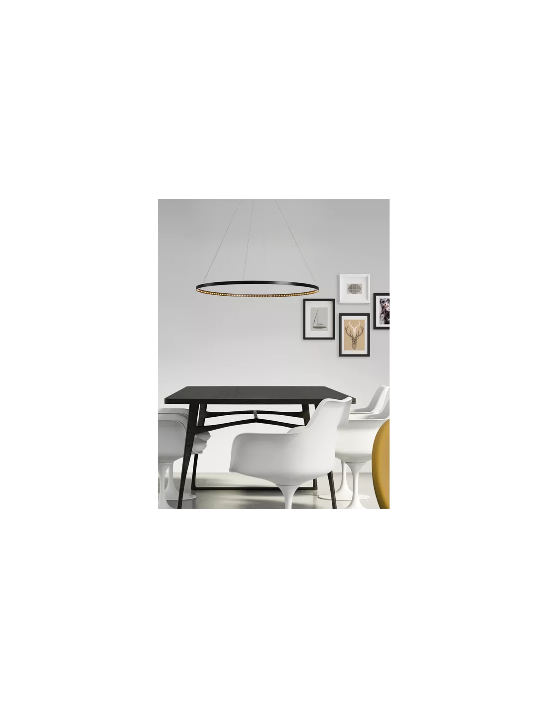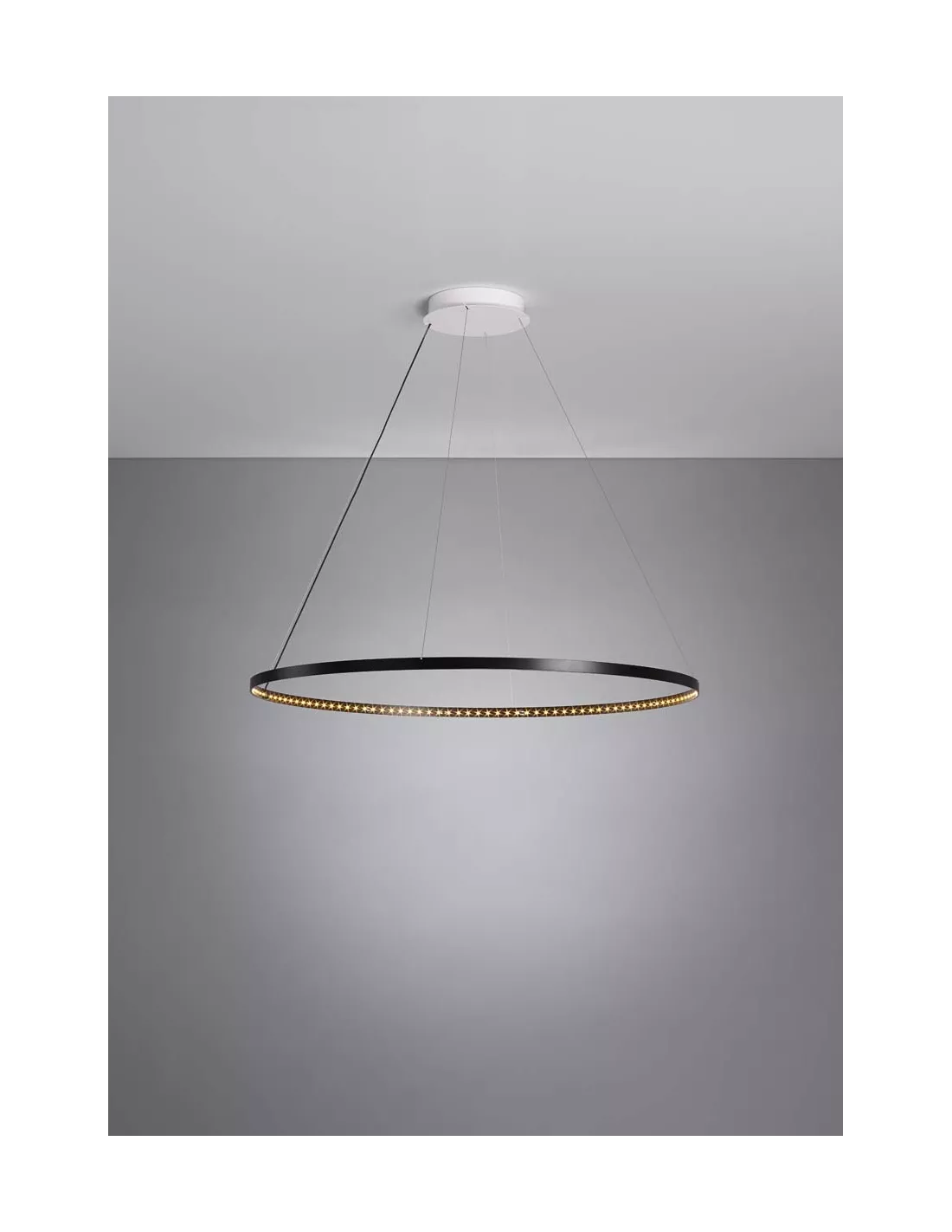 La suspension Circle noire Ø80 Le Deun Luminaires, est une suspension originale générant une lumière directe et indirecte. Le cercle de la suspension Circle noire est en acier recouvert de peinture Epoxy très résistante. Il comporte 128 LED blancs chauds (2700 K°) incrustés. La suspension Circle noire est équipée d’un transformateur électronique de 110/220 volts, muni d’une télécommande variateur de puissance 0 à 100 %. La suspension Circle noire vous est également proposée finition blanc ou bronze.
