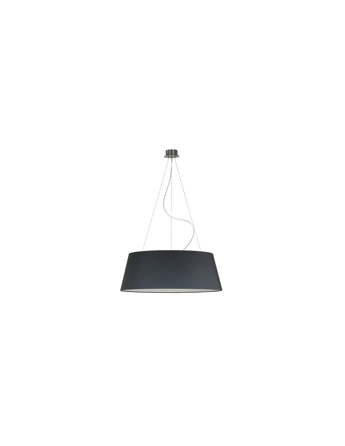 L’abat-jour de la suspension Conique est en tissu contre collé et sa fixation plafond en inox brossé.