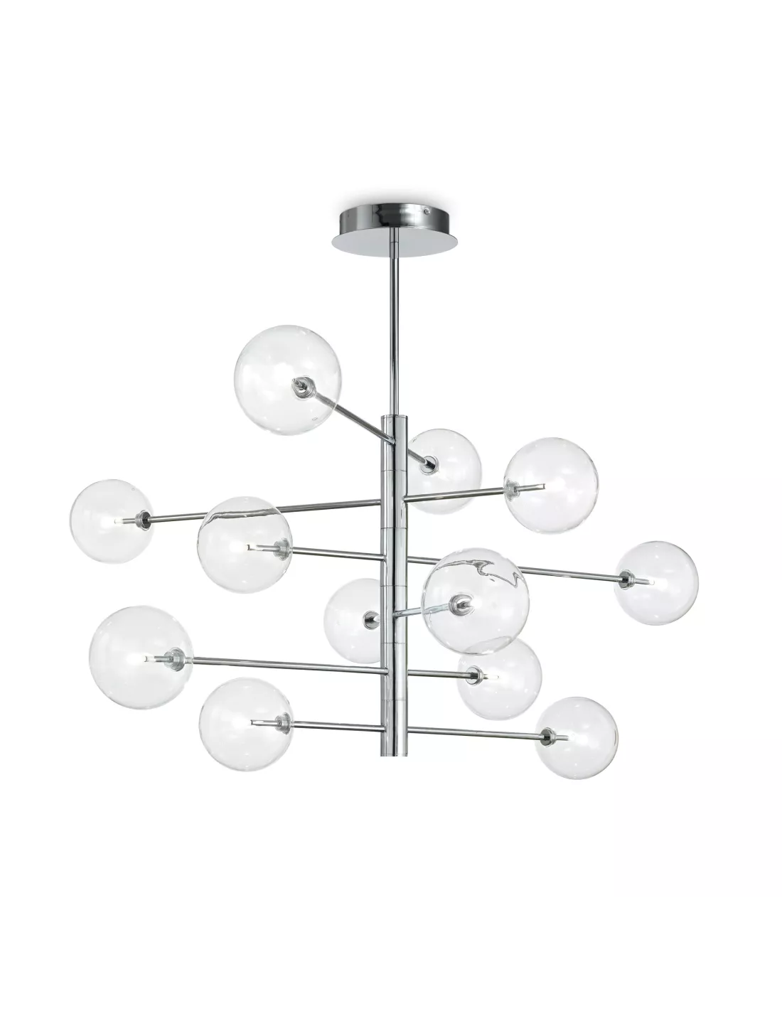 Suspension design ronde en métal chrome et ampoules apparentes, Ideal Lux