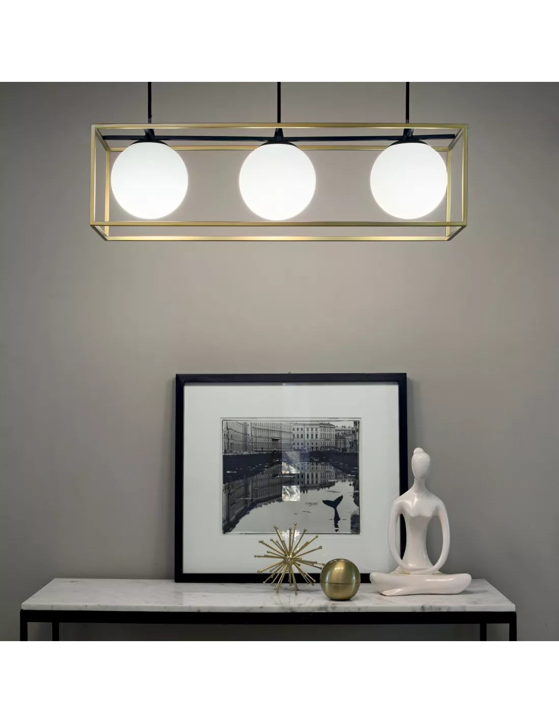 Suspension design rectangulaire en métal doré et noir 3 lampes, Ideal Lux