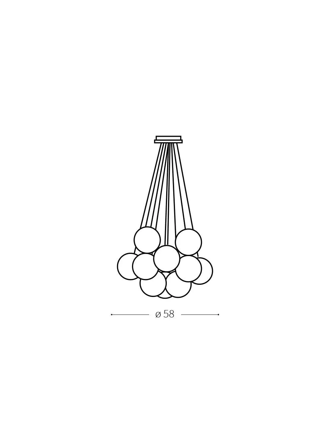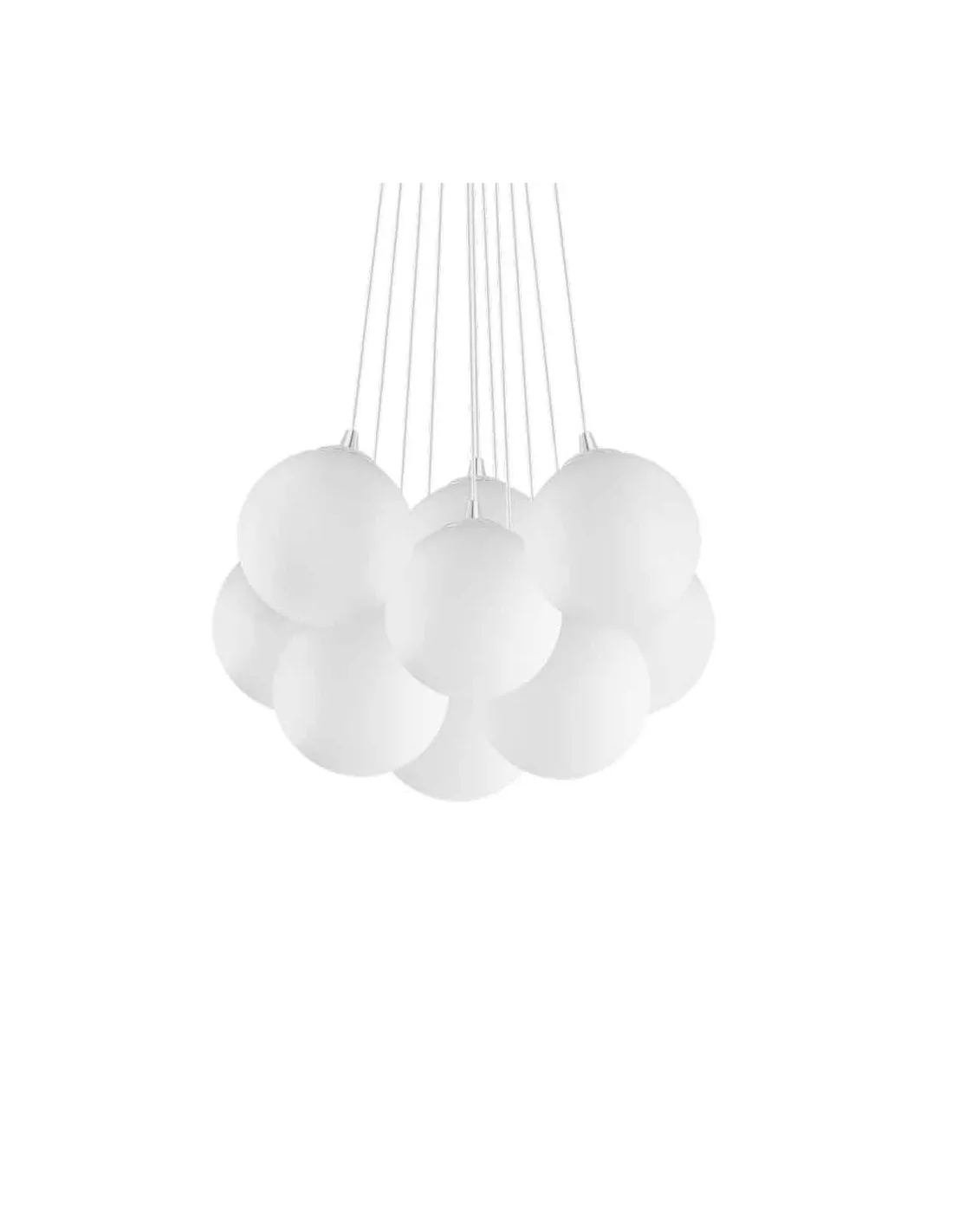 Suspension design ronde en métal argenté dotée de 11 globes blancs serrés, Ideal Lux