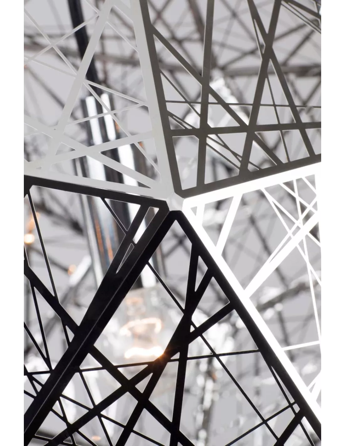 La suspension Polyhedron est en nickel satiné et s’intègrera parfaitement dans un intérieur classique ou contemporain. Le designer a souhaité créer une suspension dont la force de la lumière est atténuée par la structure. La suspension Polyhedron trouve sa place aussi bien dans les restaurant ou les bars les plus hype de la planète qu’au dessus d’une table de repas dans un salon ou une salle à manger…
