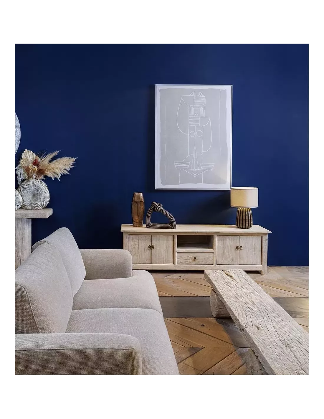 Réalisée avec soin par des artisans passionnés, cette table basse arbore une finition unique, valorisant la matière brute et les imperfections naturelles du bois. Ce traitement subtil préserve l’aspect authentique et la patine du matériau, pour un rendu délicieusement rustique.