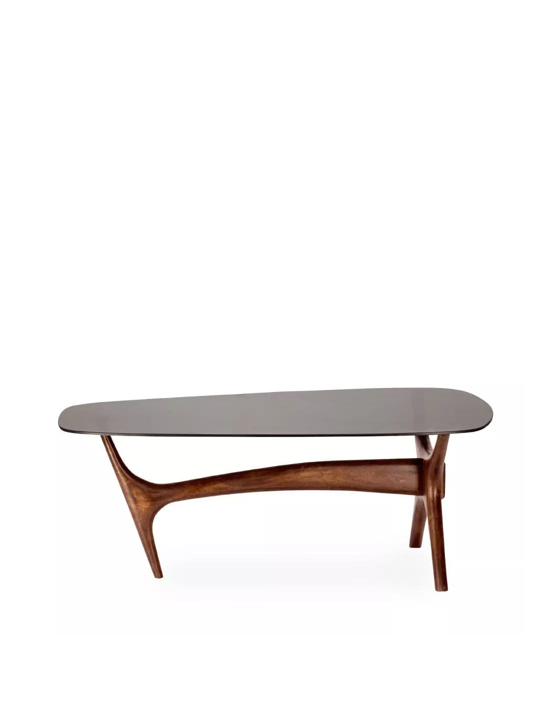 Table basse rectangulaire/ovale naturel en bois et verre fumé 110x60cm
