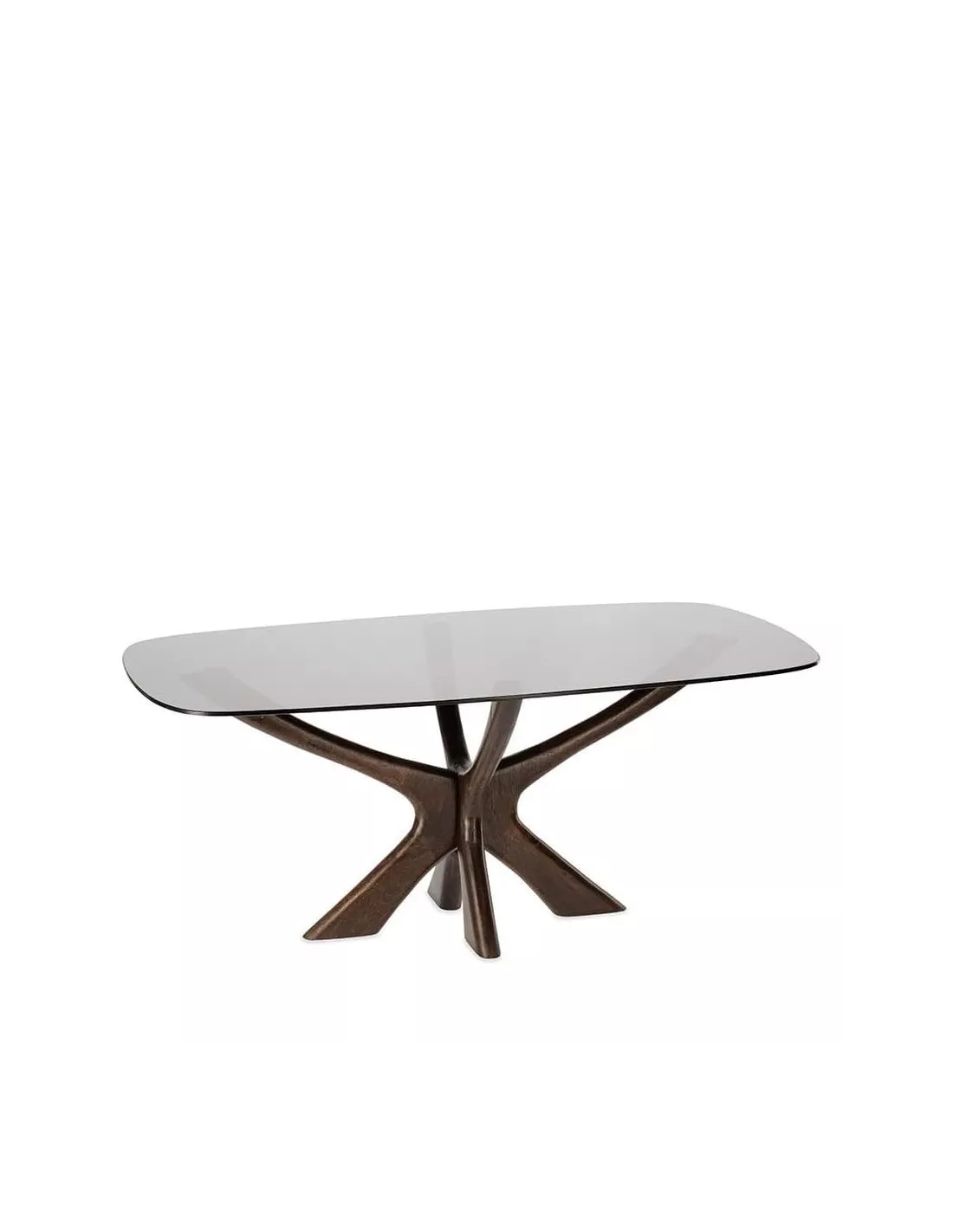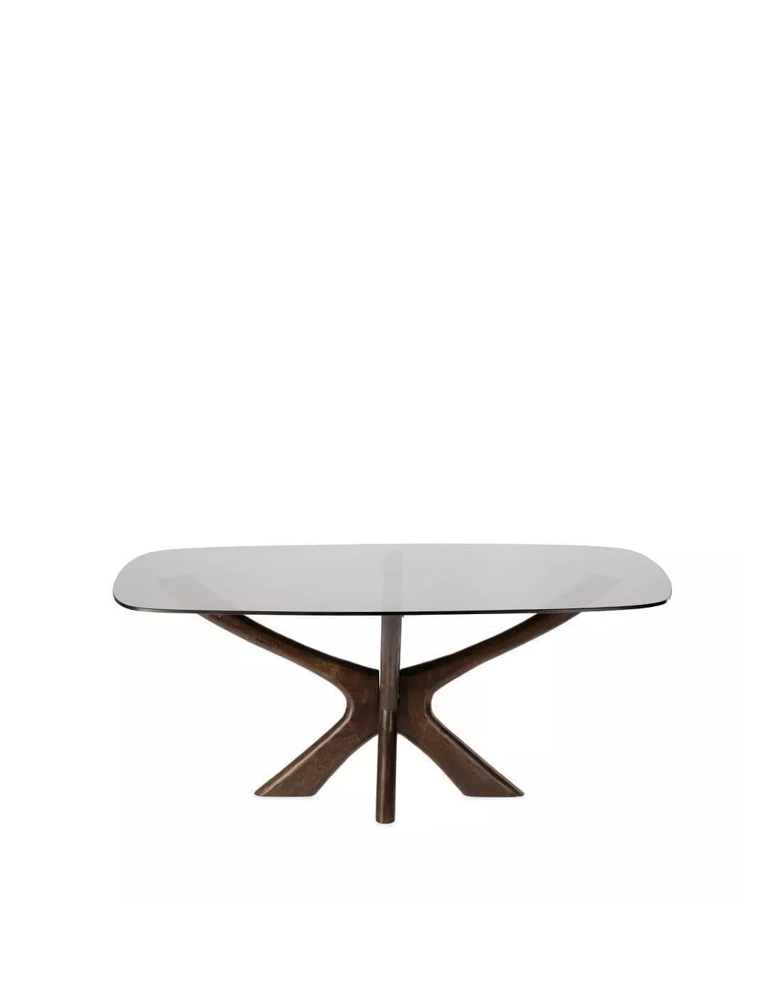 Table basse rectangulaire brune en bois et verre fumé 110x60cm