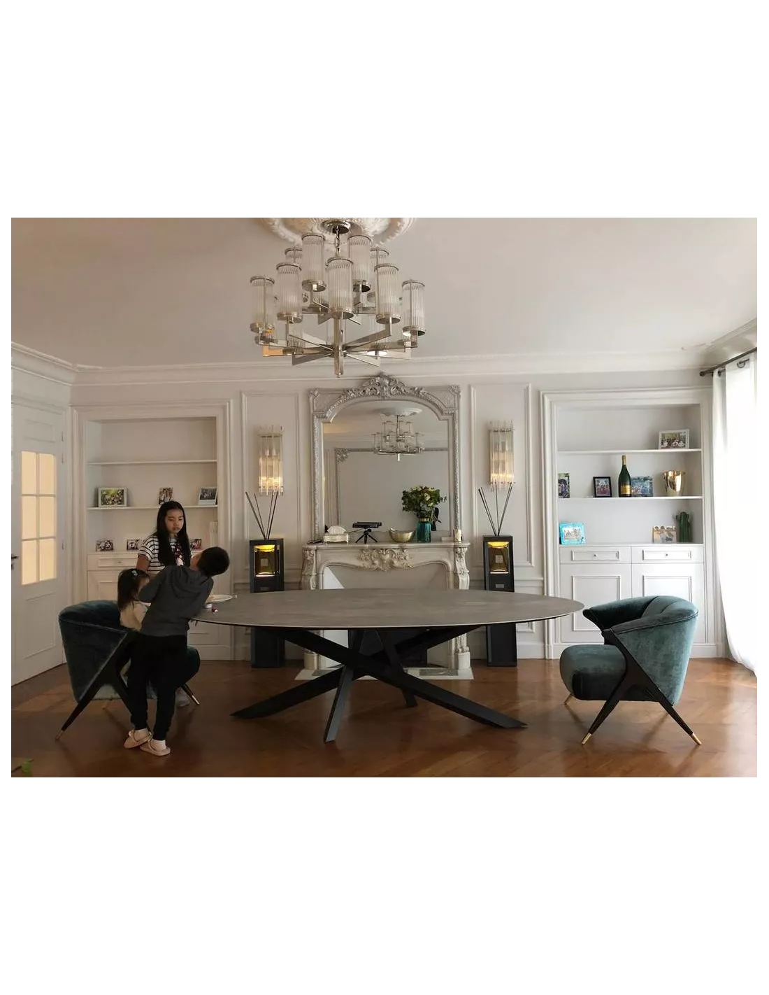 Cette table de salle à manger Céramique Versatil est présentée avec un plateau en céramique faux uni noir (céramique Black iron Premium). Cette table de salle à manger en céramique sera un véritable accessoire de décoration d’intérieur pour une table de repas élégante et raffinée. Déco en Ligne vous propose de créer votre table de salle à manger ovale sur mesure, en choisissant votre longueur et votre largeur, si les dimensions proposées ne vous conviennent pas. Possibilité également d’avoir un piètement doré avec supplément.