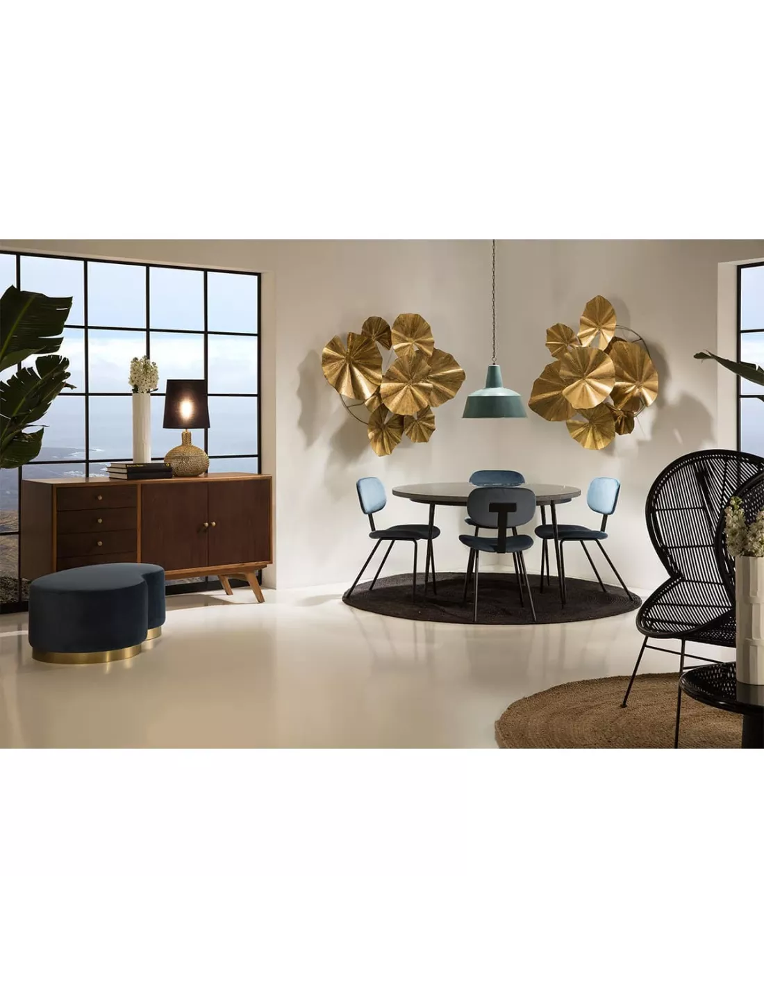 Très tendance, cette table ronde en marbre noir apportera une touche déco et élégante à votre décoration intérieure. Son plateau rond de 125 cm est en marbre noir. Cette table ronde est dotée de 4 pieds réalisés en métal noir à la ligne actuelle et raffinée.