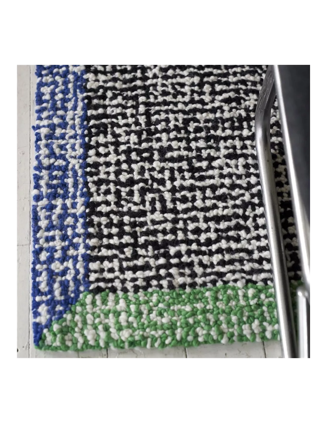 Tapis design noir et blanc bordure vert et bleu, Designers Guild