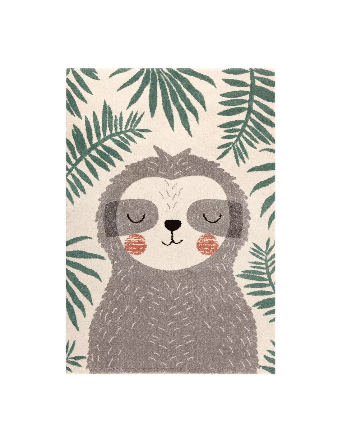 Tapis enfant motif chouette vert écru et gris en polypropylene, Nattiot