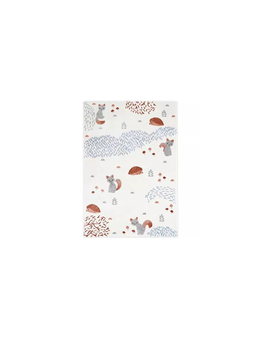 Tapis enfant au graphisme frais et plein de détails rappelant les animaux de la forêt, Nattiot