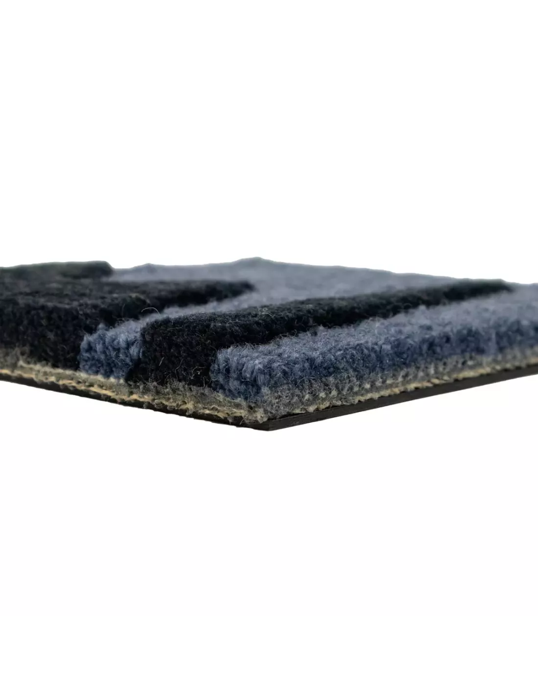 Simplicité et sophistication se retrouvent dans le tapis Glauko Indigo proposé par la maison Lelièvre. Résolument contemporain, son motif géométrique allie deux bleus profonds coordonnés. Une partie triangulaire est ornée de rayures discrètes, et les trois parties restantes diffèrent en nuances. Ce jeu de luminosité confère un effet de relief. Sa surface tuftée main, coupée et bouclée lui offre une texture agréable au toucher.