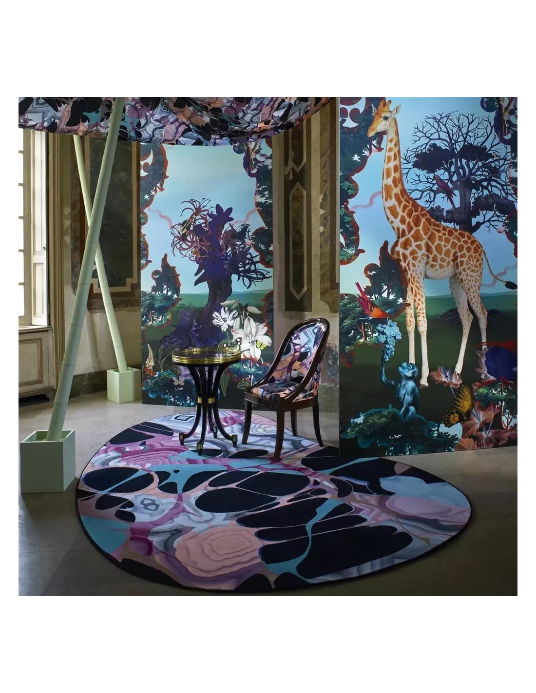 Le tapis Kaoscope Cendre sera le point d’attraction de votre salon. Ce fabuleux tapis Christian Lacroix Maison arbore des formes marbrées à grande échelle qui tourbillonnent dans une polychromie psychédélique. Avec sa forme unique, ce tapis graphique est imprimé numériquement sur un velours dense en polyamide. Le dos est en feutre et la finition est assurée par un bord solide. La signature Christian Lacroix est un label de qualité, une valeur sûre pour l’achat de votre tapis.