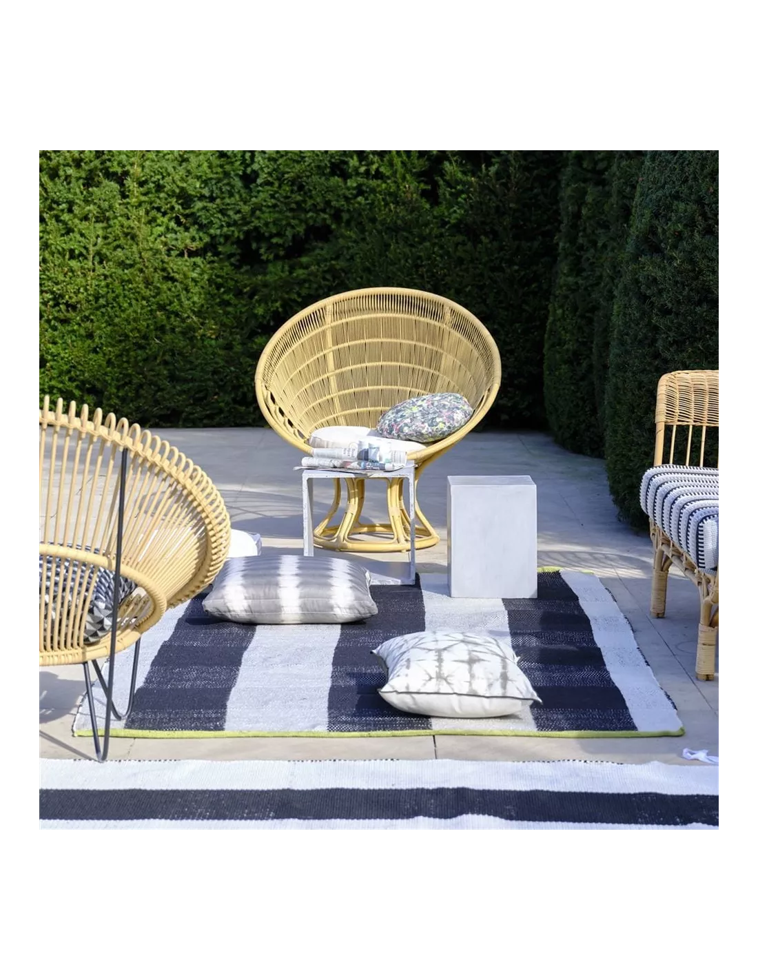 Le tapis Saliya noir Outdoor est parfait pour l’intérieur et l’extérieur. Un motif à carreaux noir et blanc de grande taille avec une bordure vert vif sur deux côtés. Élégant et incroyablement polyvalent, ce tapis à tissage plat durable et facile à nettoyer est fabriqué à partir d’un fil de polyester conçu à base de 875 bouteilles de plastique recyclé. Ce tapis outdoor est disponible en deux tailles, ainsi qu’en tapis de couloir. Designers Guild vous recommande de ne pas laisser ce tapis à l’extérieur dans des conditions météorologiques difficiles ou à la lumière directe du soleil pendant de longues périodes et qu’il faut prendre soin de sécher le tapis s’il est trempé.