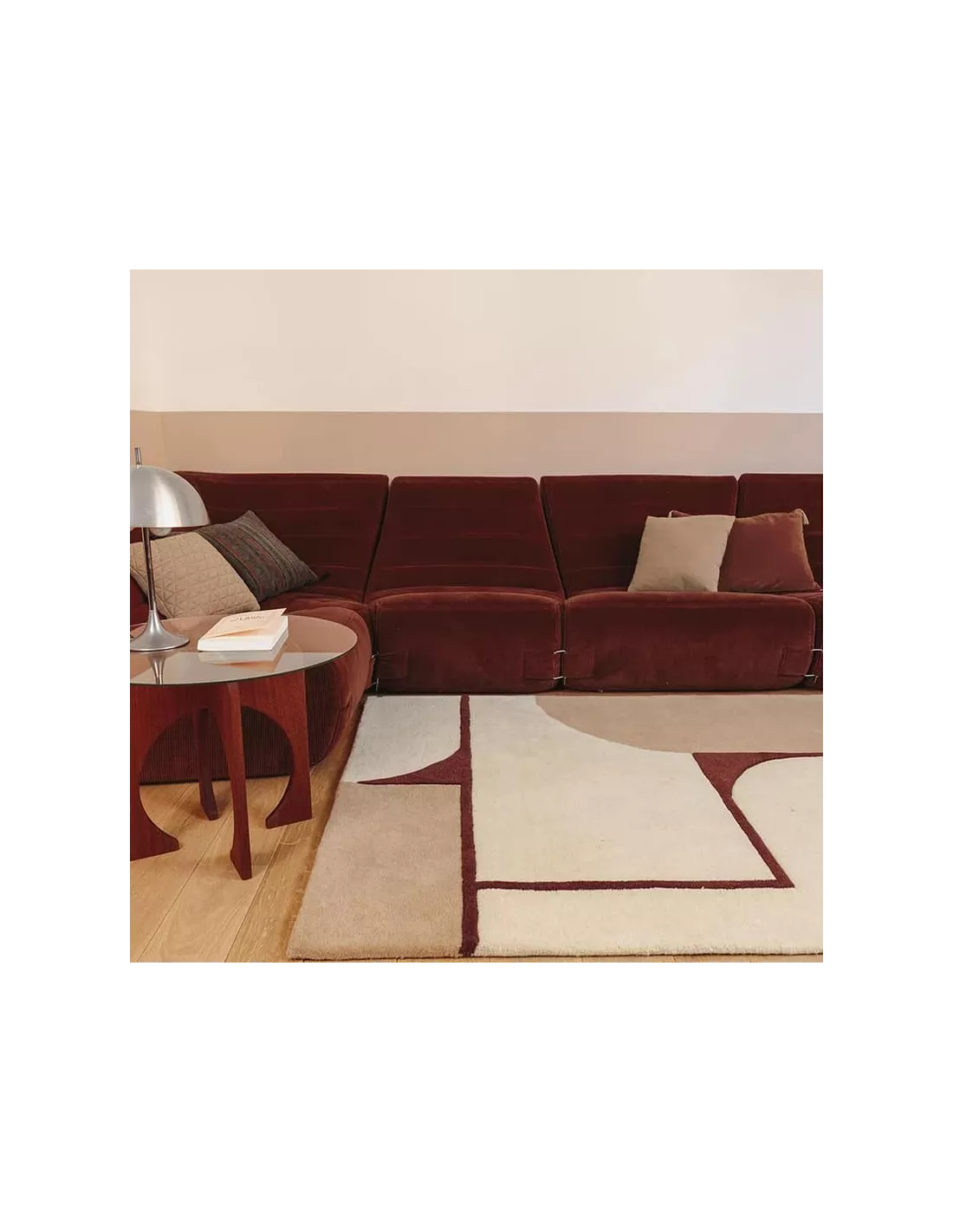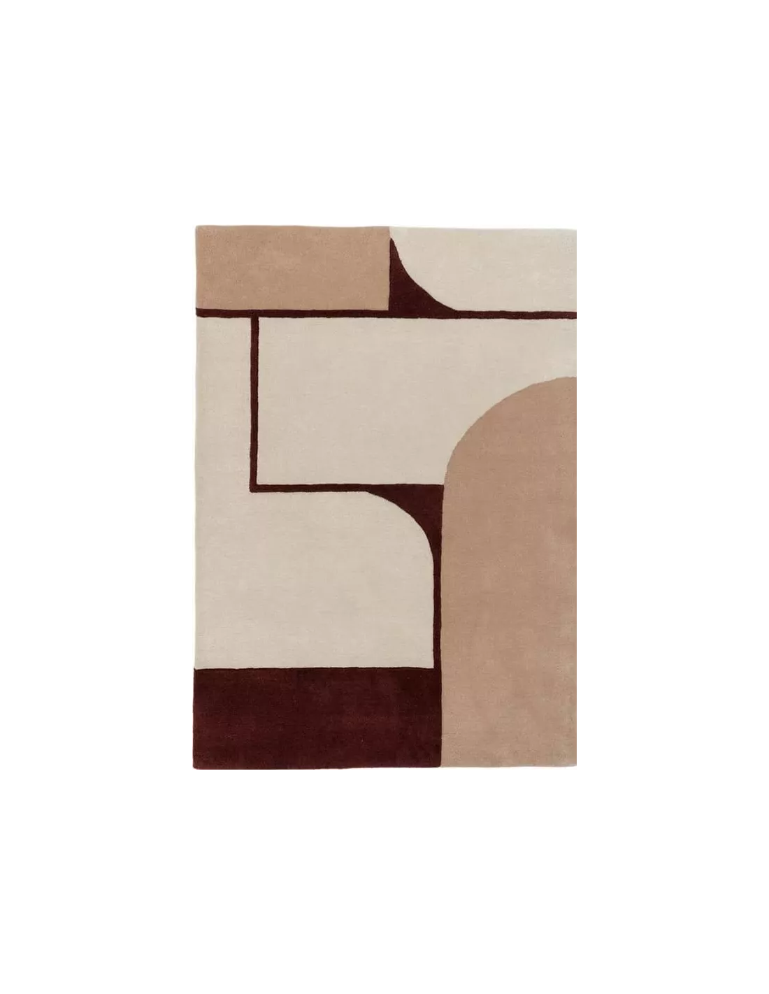 Tapis design épais en laine beige, rose et bordeaux, Edito
