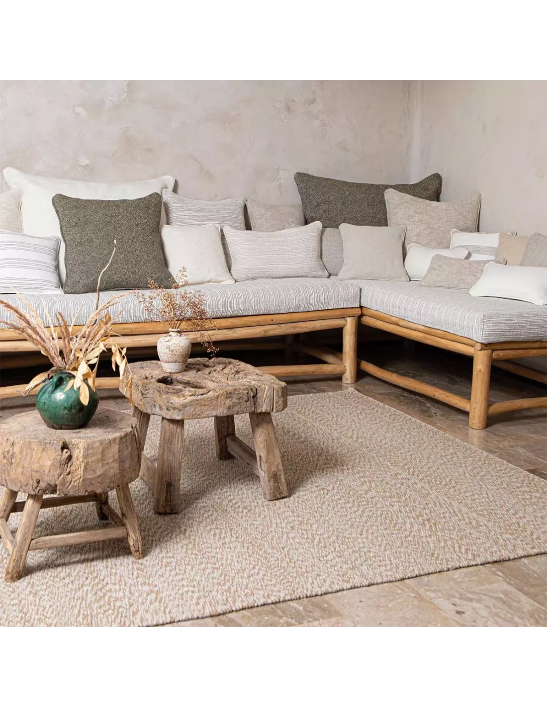 Véritable invitation au voyage, le tapis Sureau écru insuffle une atmosphère chaleureuse et apaisante, propice à la détente et à la méditation. Posé dans un salon cocooning, une chambre douillette ou une entrée accueillante, il apporte une touche de sophistication naturelle, tout en offrant un confort inégalé. Une création emblématique de l’excellence artisanale indienne, à la fois élégante et intemporelle.