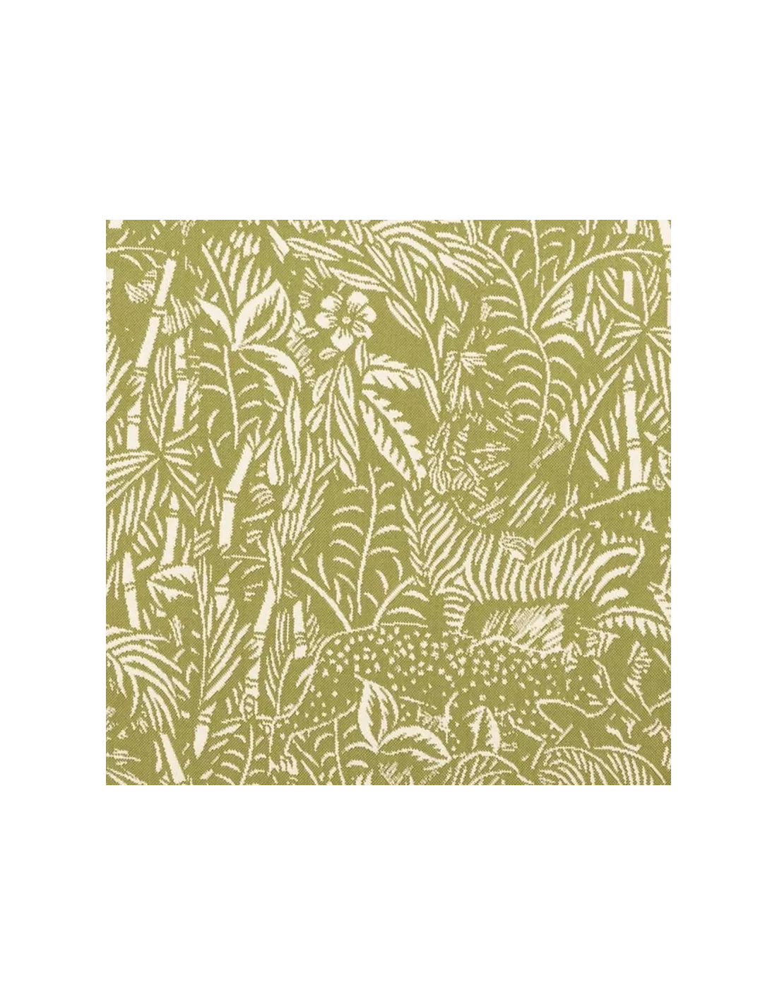 Le jacquard Afrika Tilleul signé Jean Paul Gaultier arbore le motif bicolore d’une végétation tropicale, abritant des fleurs et des personnages. Ces éléments sont tracés avec des lignes simples, contrastant avec un fond uni. L’ensemble de cette composition florale luxuriante se décline dans un choix de nuances neutres et froides. Doté d’une bonne résistance, ce textile convient aux usages extérieurs.