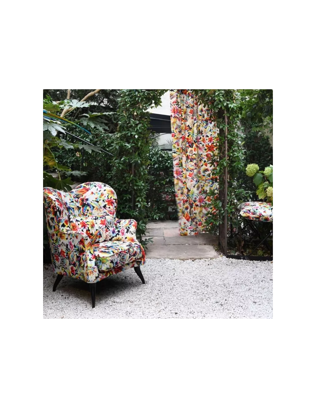 Le tissu Barbade Jean Paul Gaultier arbore des fleurs multicolore. Adapté aux usages extérieurs et aux intempéries, ce tissu Outdoor offre une bonne résistance.