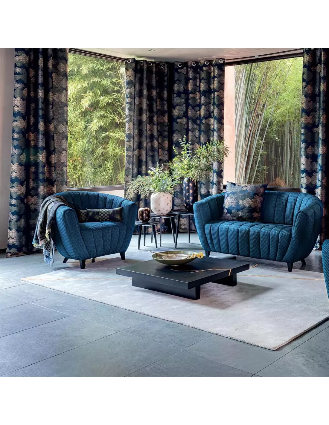 Le tissu Chiyogami bleu et vert invite à apprécier l’art intemporel du damier, revisité avec une touche brossée rappelant l’ikat. Les teintes profondes et sobres du motif se complètent harmonieusement, rehaussant son style classique. Conçu par K3 Design, ce jacquard inspiré du Japon apporte une note de raffinement aux intérieurs.