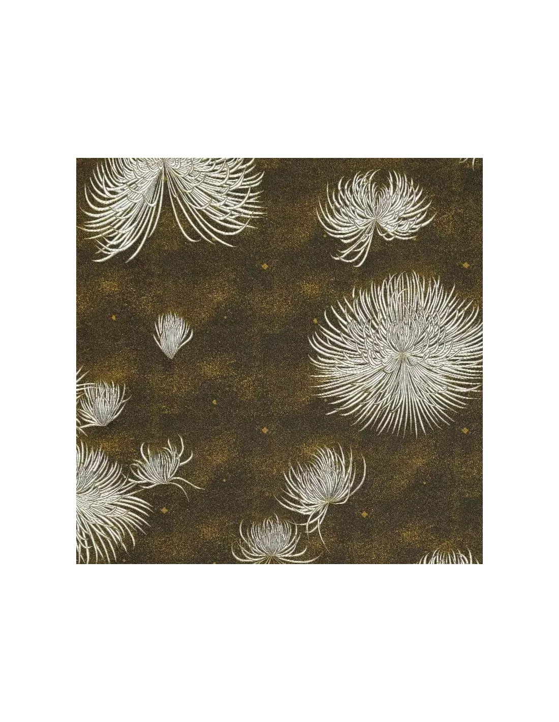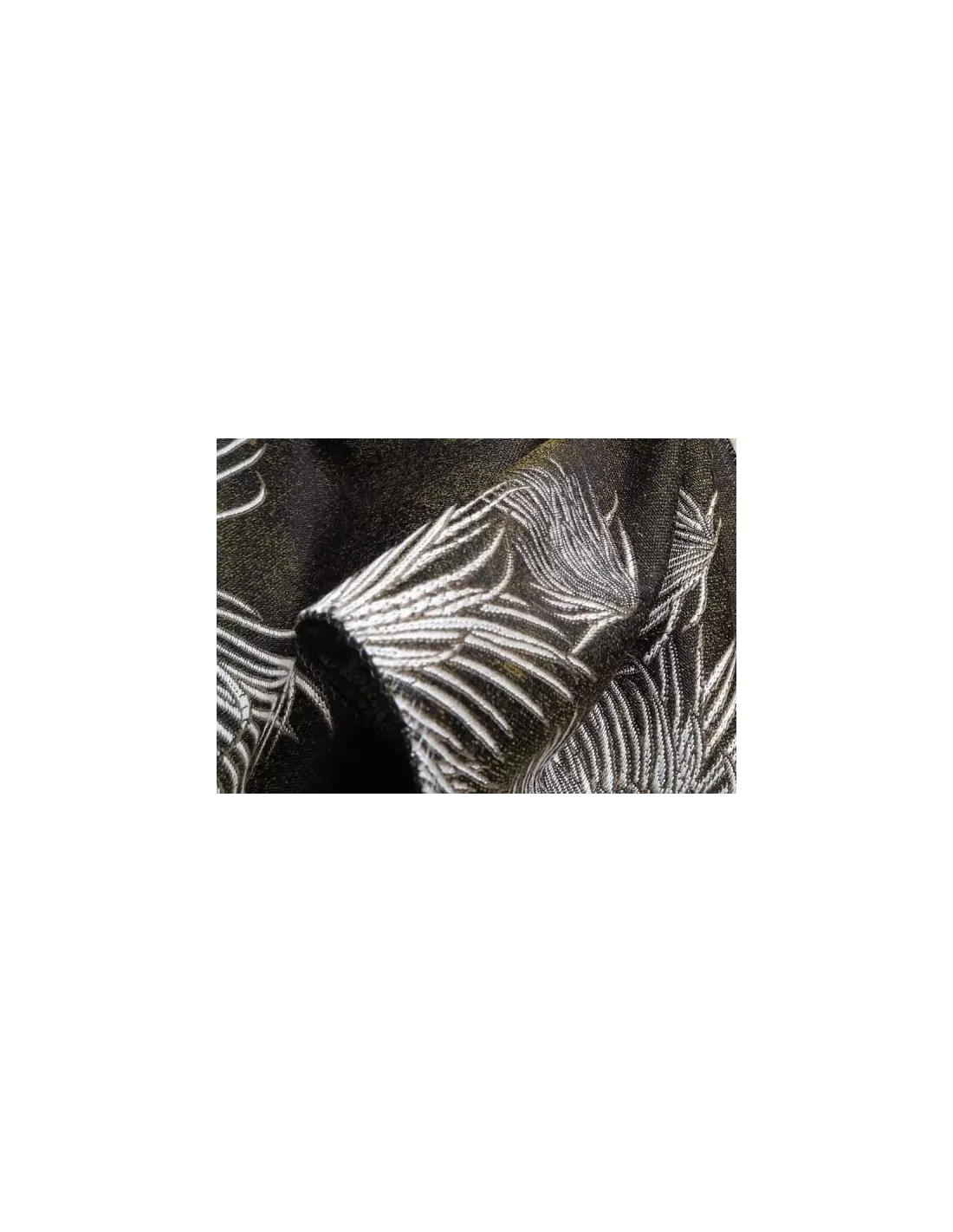 Tissu jacquard noir motifs lis-araignées blancs, K3 design by Kenzo Takada