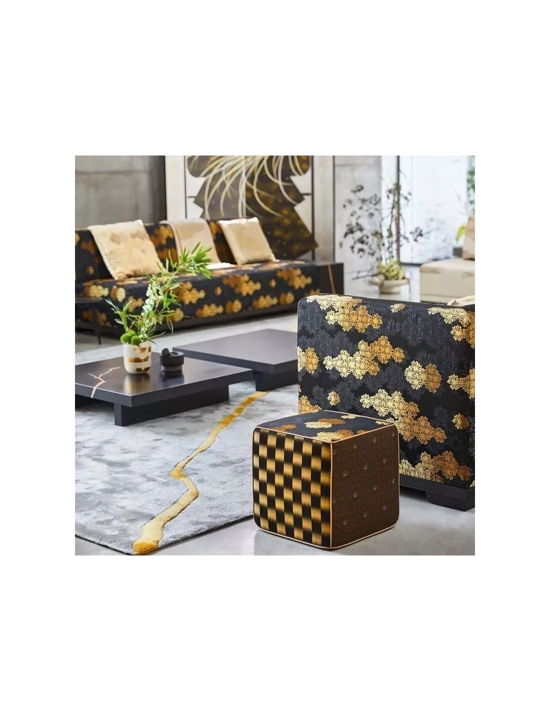 Tissu jacquard anthracite au design floral, K3 design by Kenzo Takada