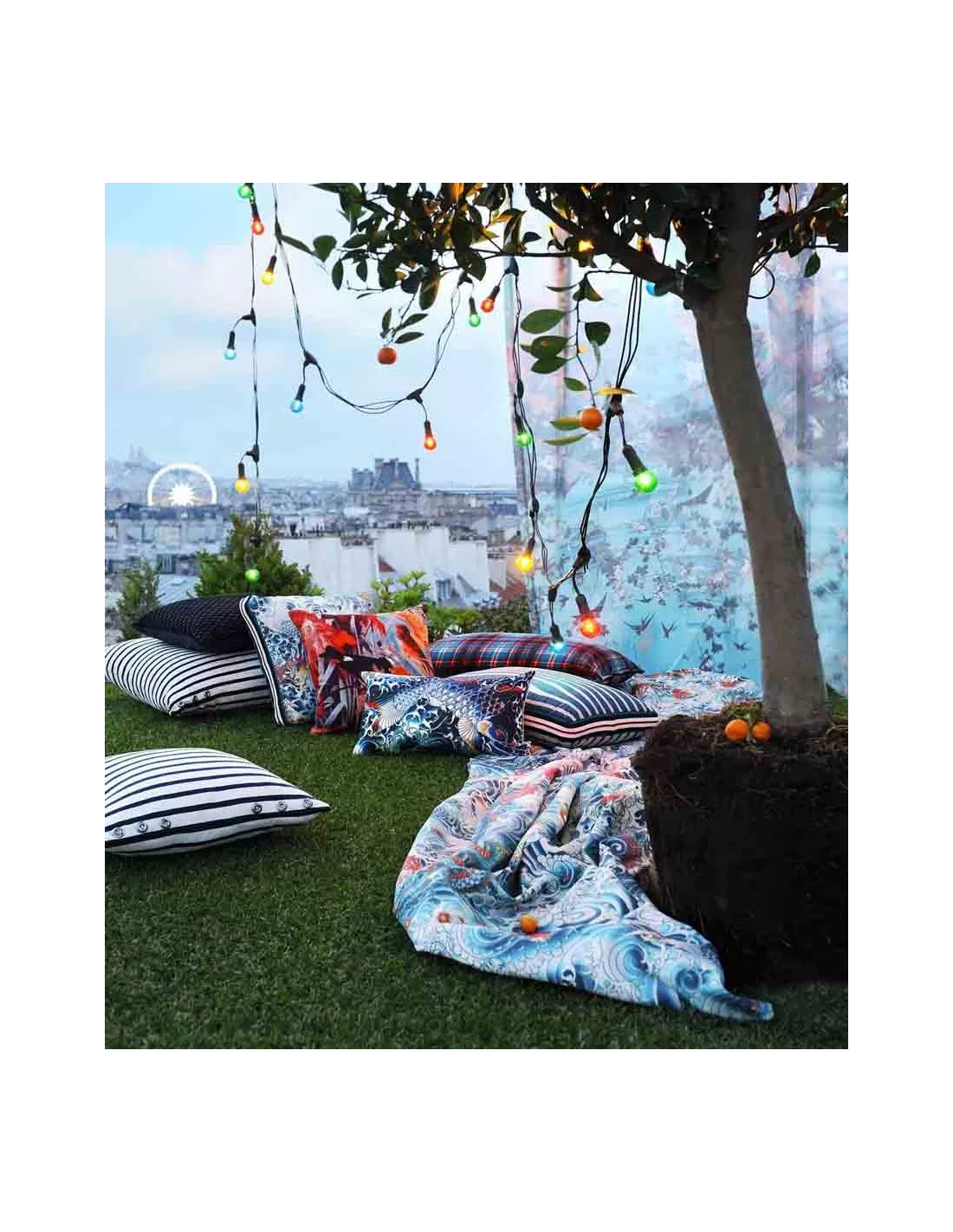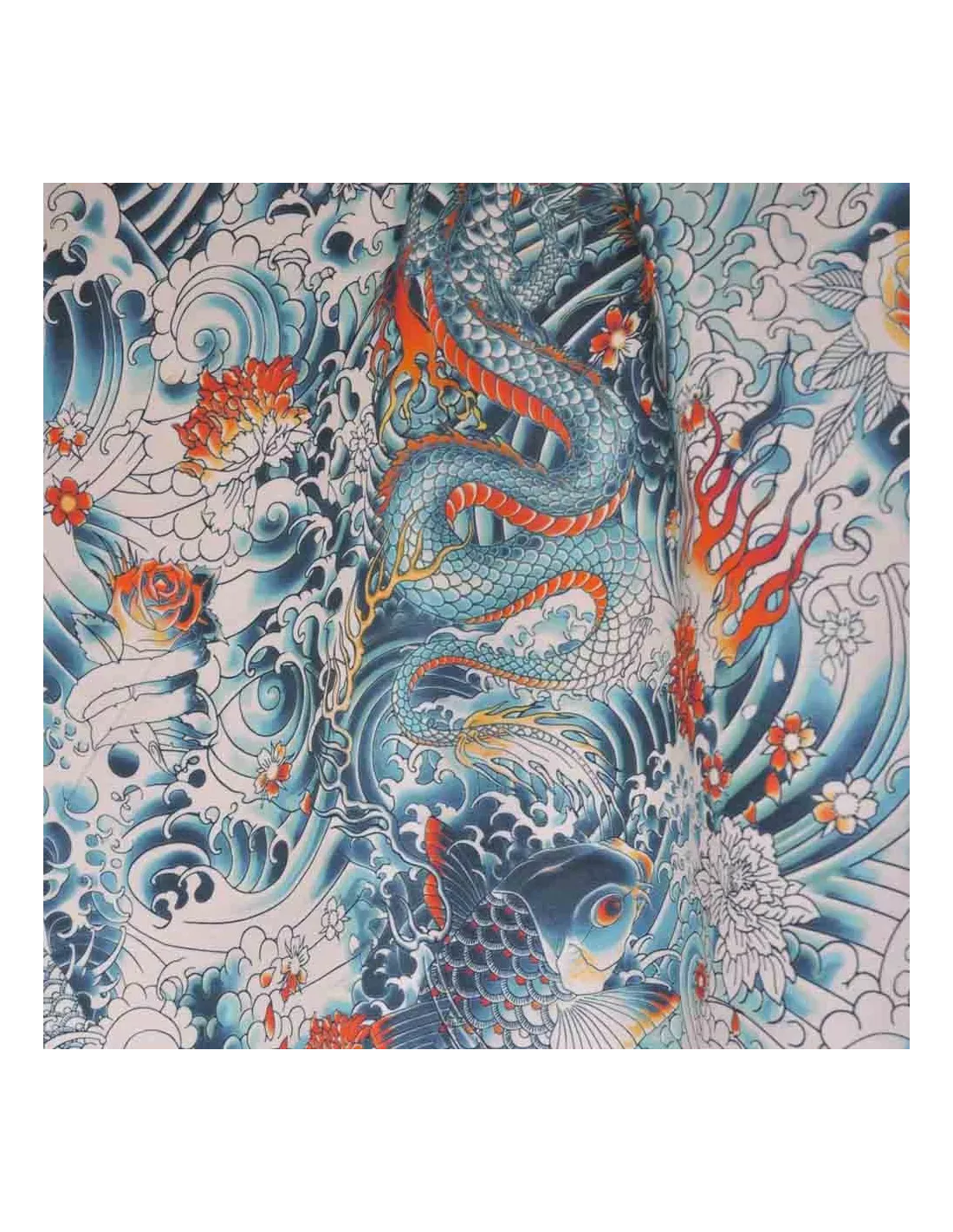 Le tissu Rock Bengale Jean Paul Gaultier est une belle toile de coton et lin souple et fluide, imprimée d’un motif de tatouage tout en nuances. Deux colorations, l’une forte et réaliste en indigo et encre, l’autre totalement réinterprétée en neutre, sable et orangé. Ce tissu d’ameublement est lavable à 30°.